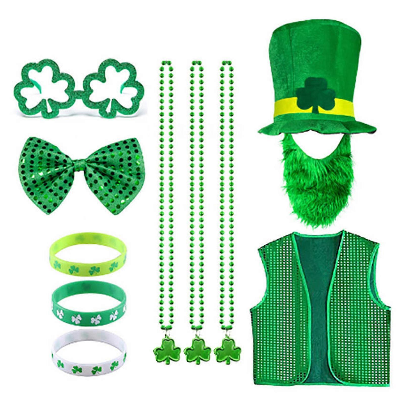 Cups Hat, Bow Ties, Beard, Necklaces Props Set for Patrick's Day Men Women Patricks Day Costume Accessories Set Multicolor