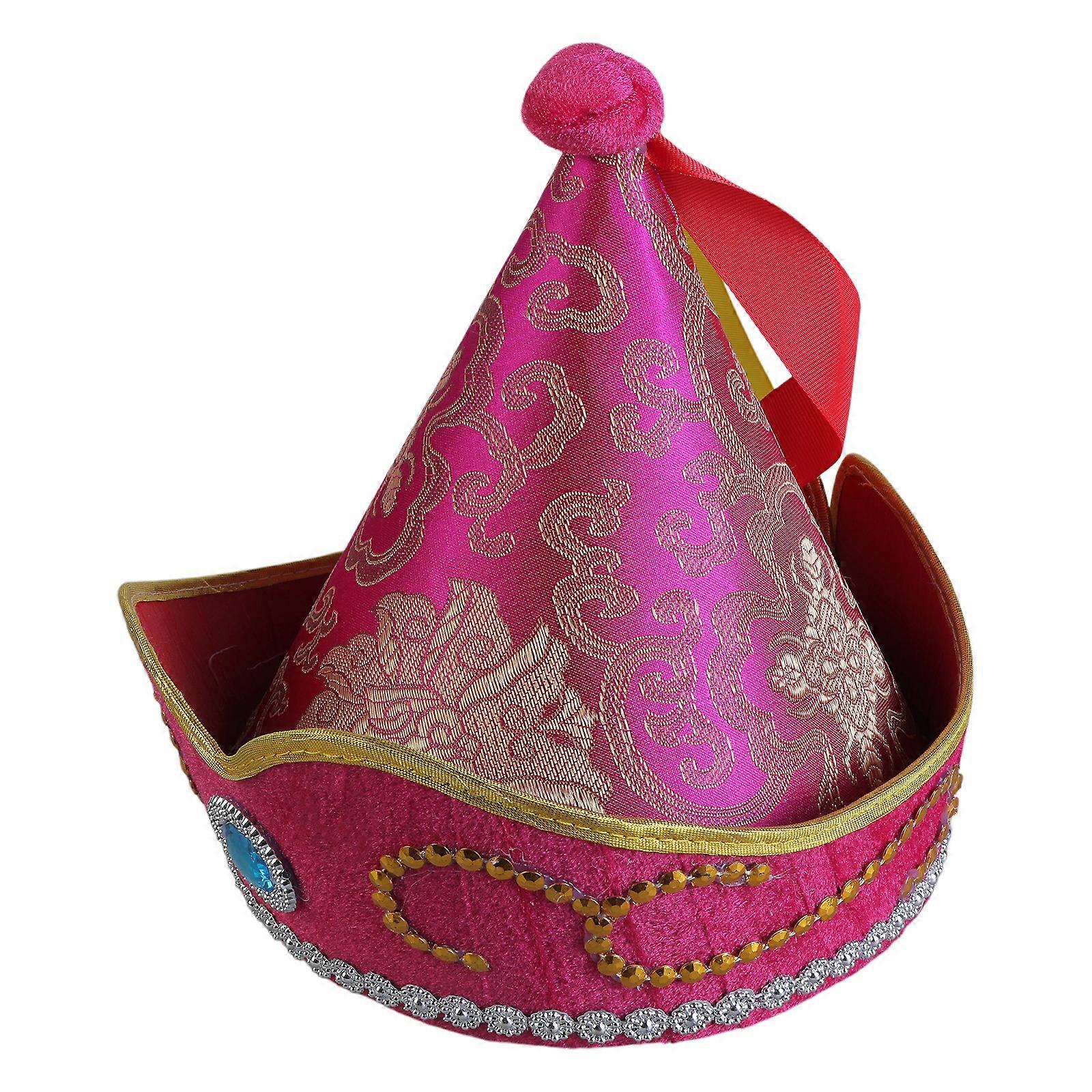Mongolian Hat for Adults Tradition and Modern Fashion Trends Dance Headwear Dance Costume Caps Stage Props rose red child