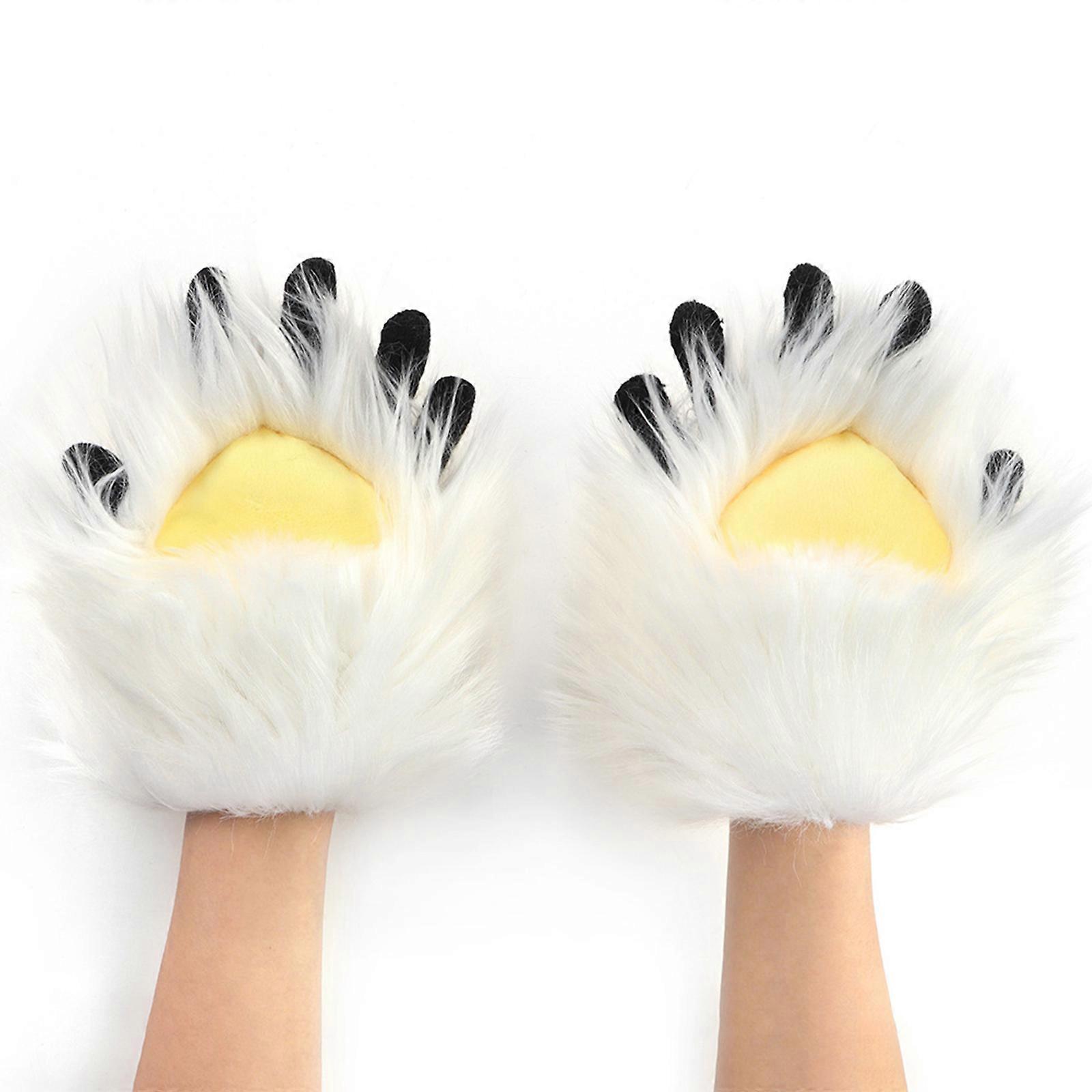 Faux Furs Animal Foxes Paws Mittens Halloween Cosplay Costume Accessories Cats Paws Gloves with Claw Fursuit Gift White yellow