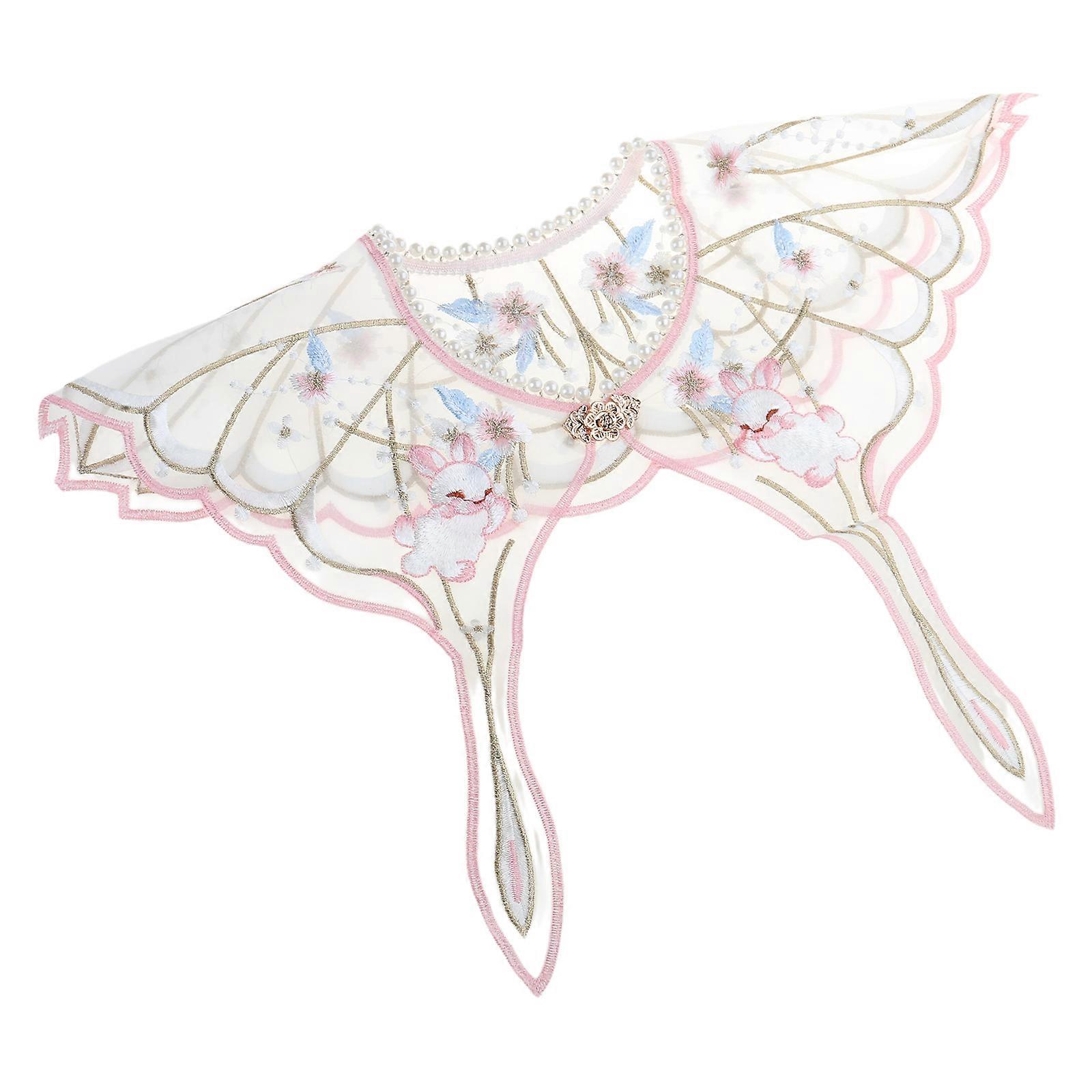Lace Floral Collar Chinese Hanfu Kids Girl False Collar Detachable for Kid Delicate Embroidery Collar Rabbit Pattern Watermelon Red
