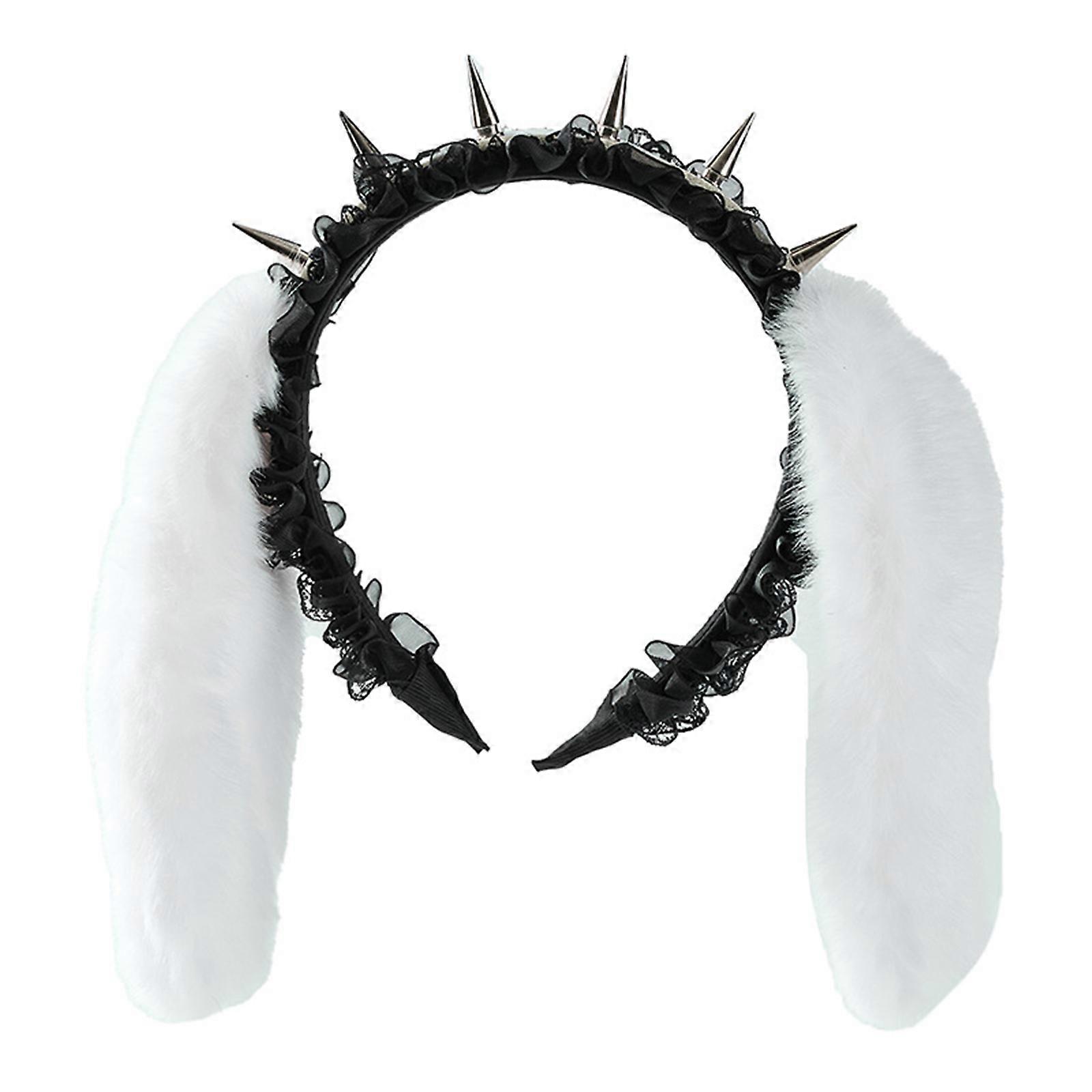 Devil Spiked Headbands Rabbit Ears PU Leather Lace Ruffled Unisex Headpiece For Stage Performances Outings White