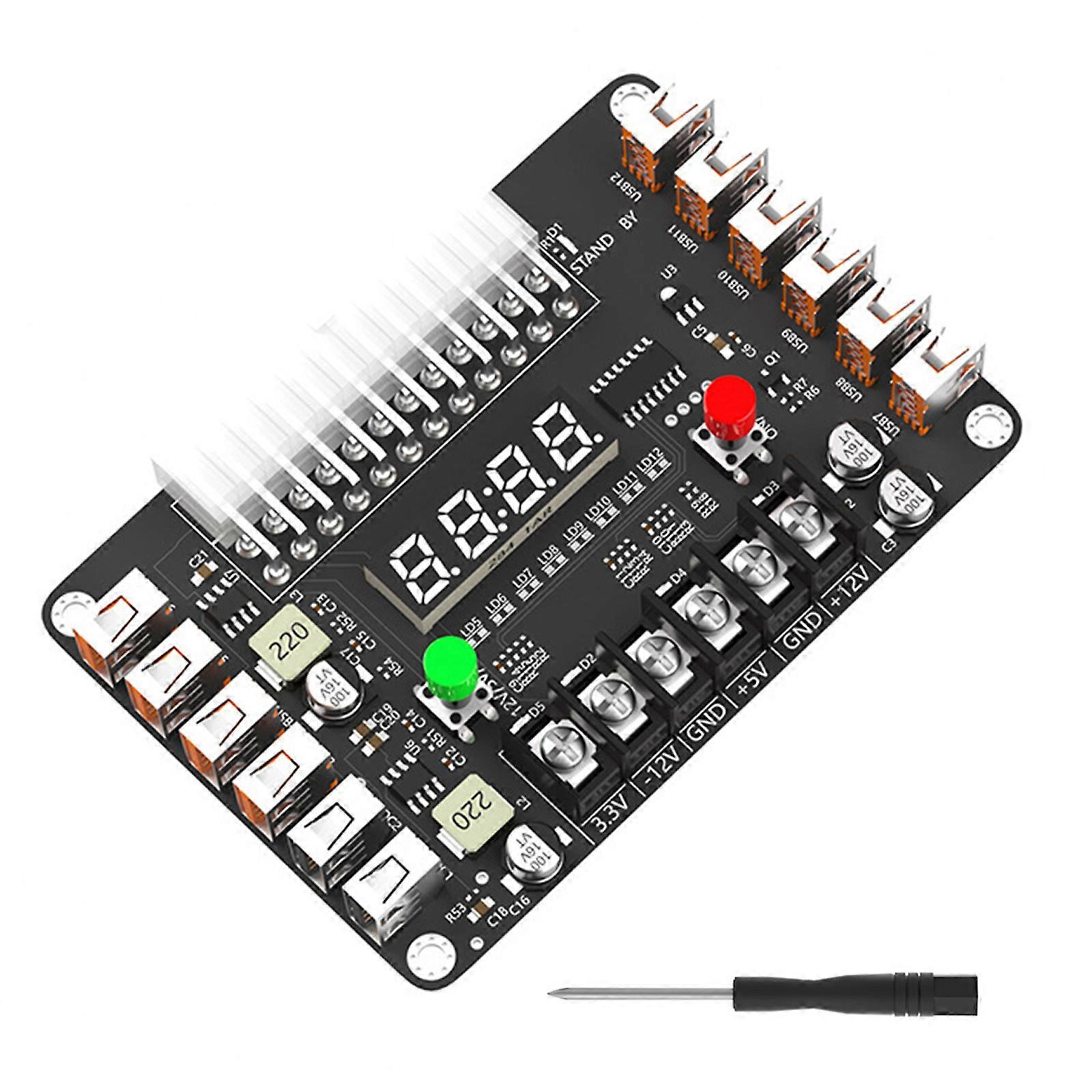 24Pin To 12Port USB Power Supply Adapter Board Voltages Display Toggle Switches For Multiple Hard Drives Multicolor