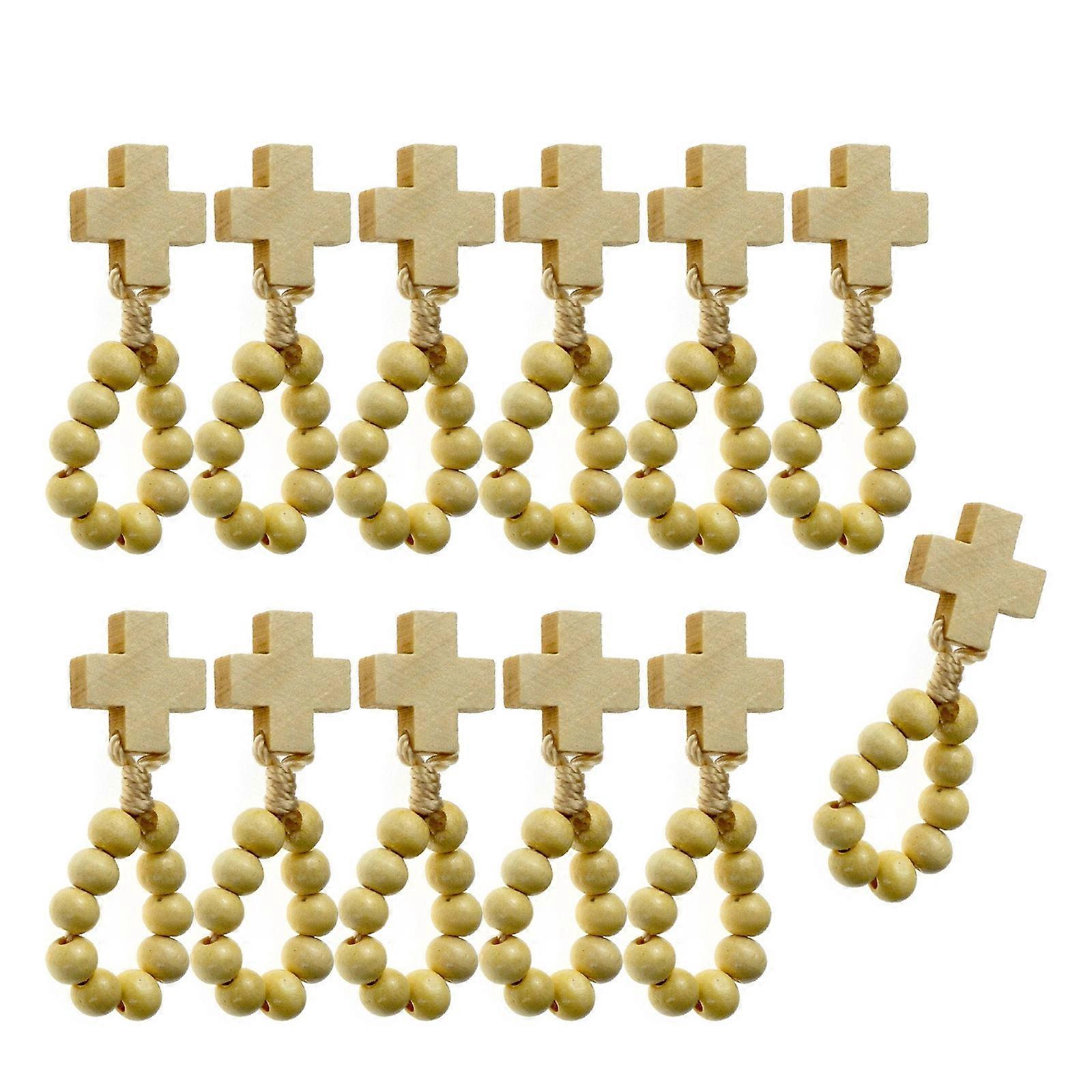 Colorful Beaded Finger Rosary Comfortable Wood Bead Finger Bracelet with Crosses Religious Finger Accessory Multicolor