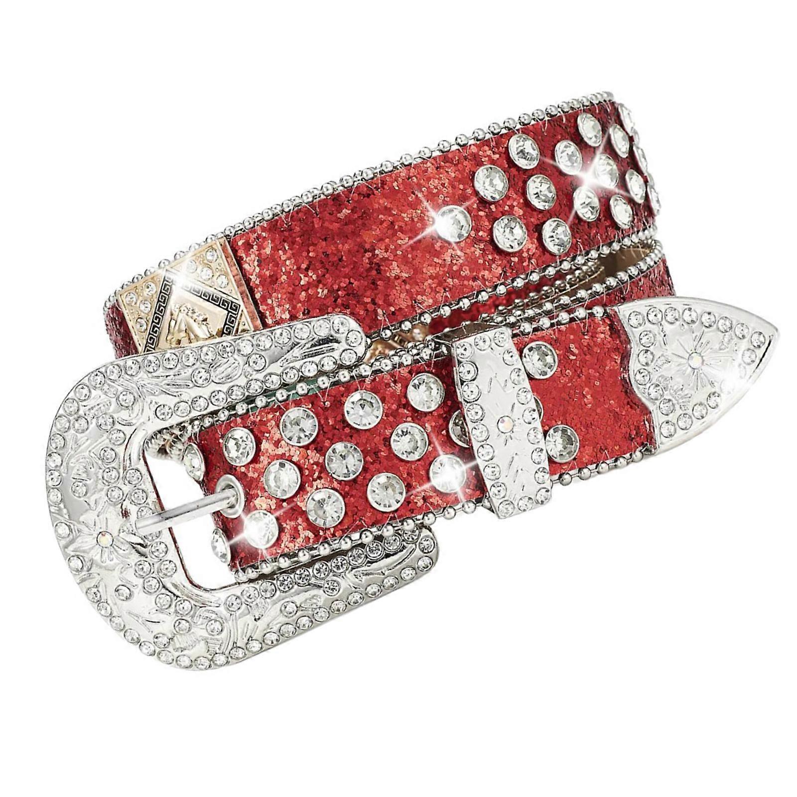 Rhinestones Belt for Women Men Sequined Jeans Pants Belt Bead Trim Belt for Shorts Dress Fashion Rock Waist Accessories Red S