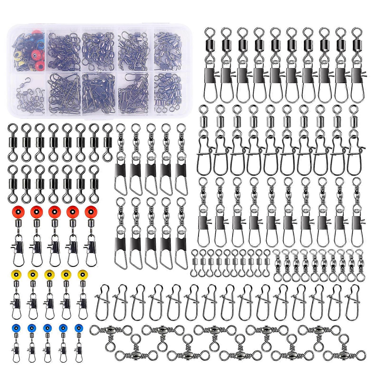 Features: Experience fishing with our 115pcs Fishing Swivels Connector Set, feature Bearing for smooth rotation and operate. These high quality swivels are to withstands both saltwater and freshwater conditions, making them perfect for fishing adventure. For anglers, enthusiasts, and professional fishermen, this Swivels connector caters to anyone about fishing, from hobbyists to competitive participants. Whether you're casting your line in the ocean, lake, or rivers, these connectors are suitable for catching a variety of fish including sea bass, and trout. Enhances your fishing efficiency with our easy to use connectors that allow for quick changes and adjustments, ensuring you spend more reeling in your catch and less time fiddling with gear. Specifications: Component: Metal Box Size: About. 12.5x6.5x2cm/4.92x2.56x0.79in Package Includes: 115pcs Fishing Swivels note: Please allow 1-2cm errors due to manual measurement. Due to difference between different monitors, the picture may not reflect the item actual color.