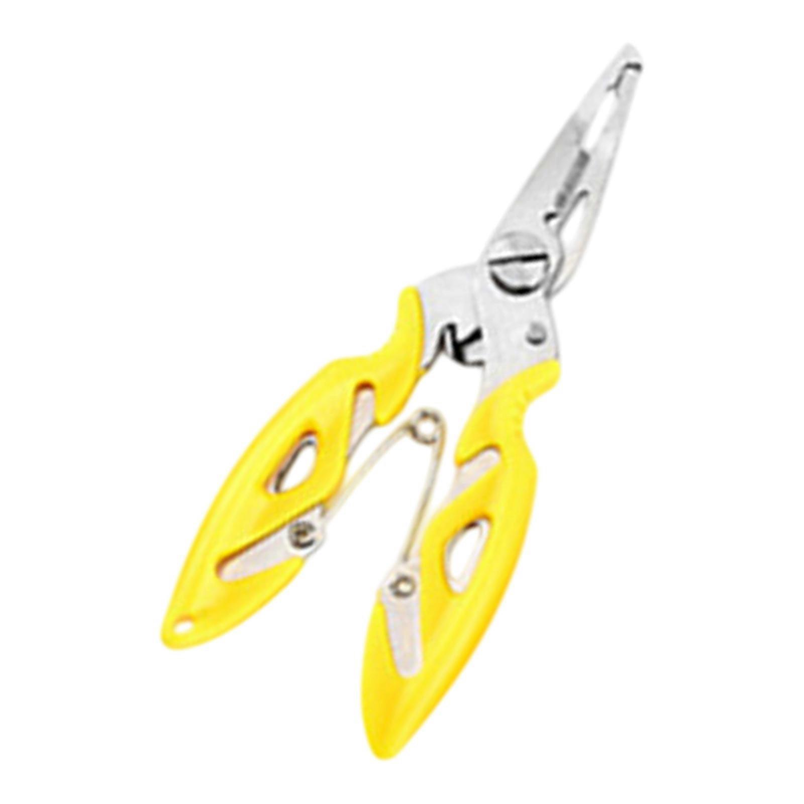 Stainless Curved Mouth Plier with Safety Lock Fishing Tackle Fishing Multitool Hook Remover Braided Fishing Line Cutter Yellow