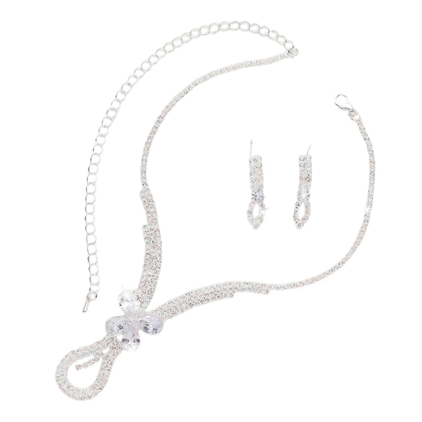 Features: Elevating your bridal elegant with the Women's Jewelry Set, featuring a clear rhinestones crystals florals drop necklace and clip on earring set in a sophisticated silver tone. Crafted with stylish rhinestones, this jewelry set boasts sturdy brass with crystals, offering accessory that any wedding supplies. Designed for bridal, this jewelry set is portable for women attending weddings, or any formal event where is key. For wedding ceremonies, getaways, elegant dinners, and birthday celebration, this set adds charm and sophistication to your special occasions. With its adjustable necklace length and comfortable fit, the Jewelry Set ensures you look breathtakingly beautiful throughout your memorable day of elegant styles. Specifications: Component: Brass and Rhinestones Color: Silver Size: Necklace Chain Length 28+18cm/11.02+7.08inch, Earring Pendant 2.8x0.7cm/1.1x0.27inch Package Includes: 1pc Bridal Jewelry Set note: 1.Please allow 1-2cm errors due to manual measurement, making sure that you will not mind before order. 2.Due to the differences between different monitors, the picture may not reflect the actual color.