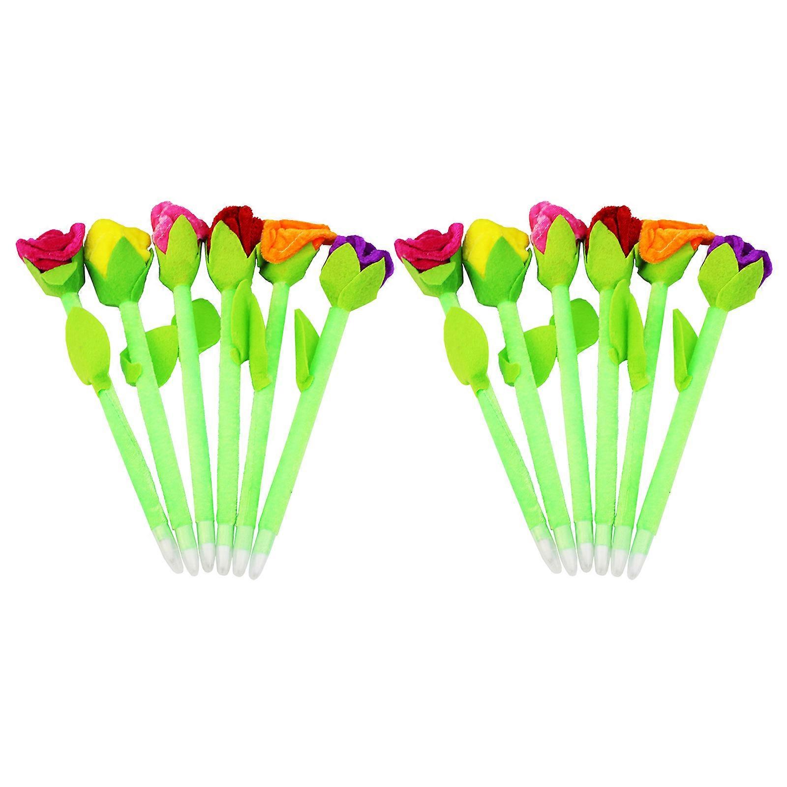 12Pieces Rose Flower Ballpoint Pen Funny Writing Pen Smooth to Write Christmas Stocking Fillers for Student Kid Reward Multicolor
