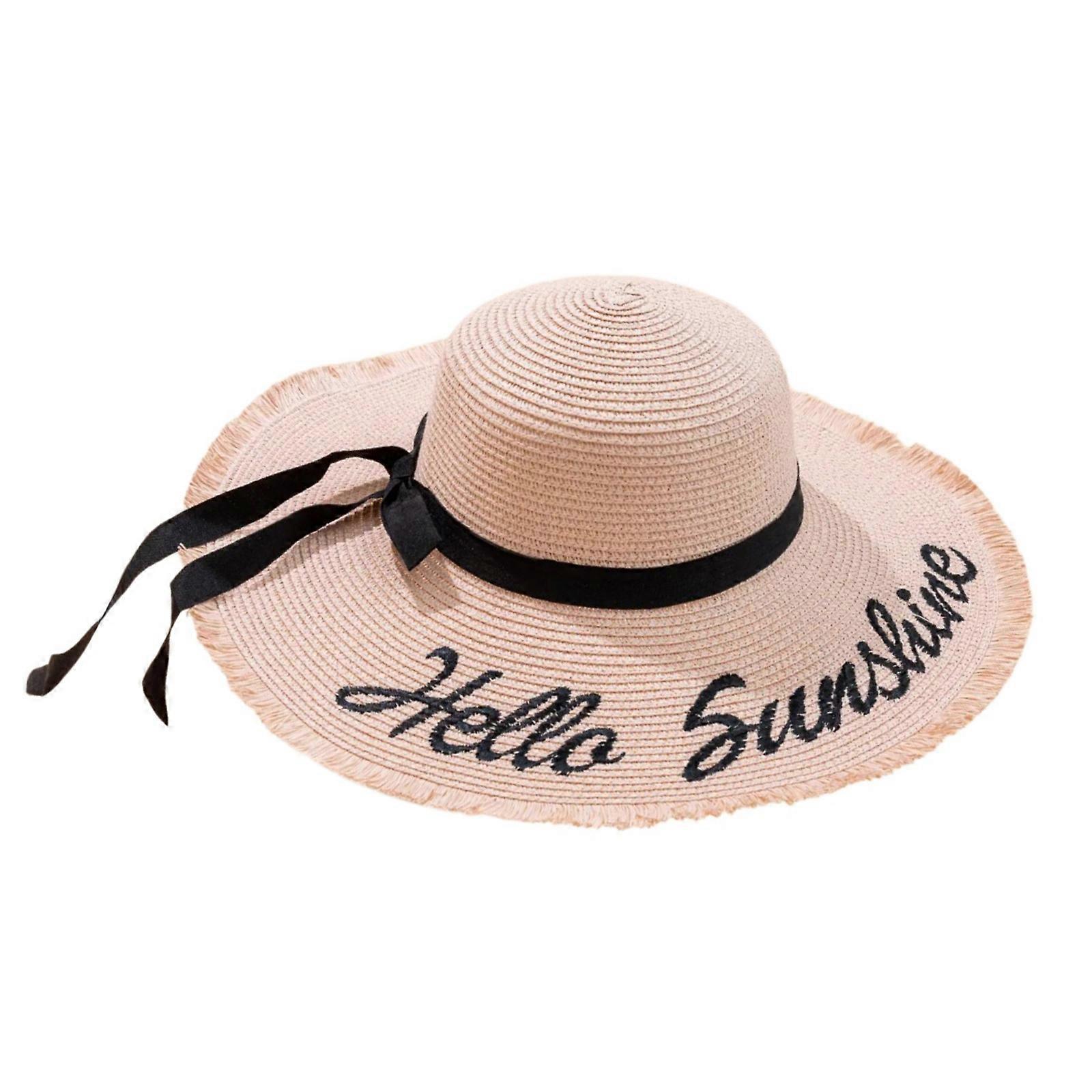 Letter Print Sun Hat Holiday Spring Weaving Straw Hat Woman Commutes Camping Taking Photo Handmade Beach Hat for Girl pale pinkish gray One Size