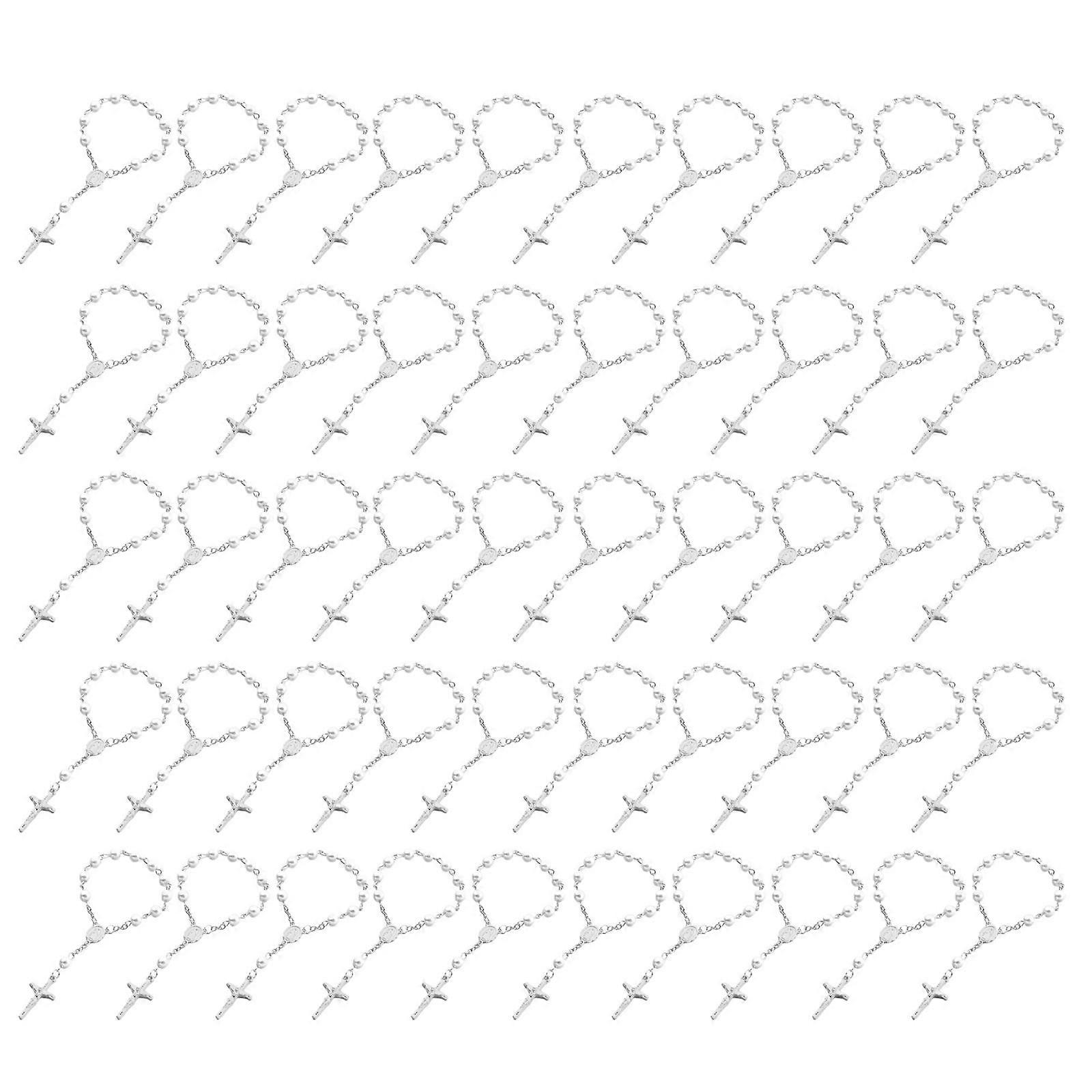Fashion Cross Charm Bracelets Rose Flower Prayer Beads Bracelets Adjustable Prayer Rosary Bracelets Jewelry for Women Multicolor