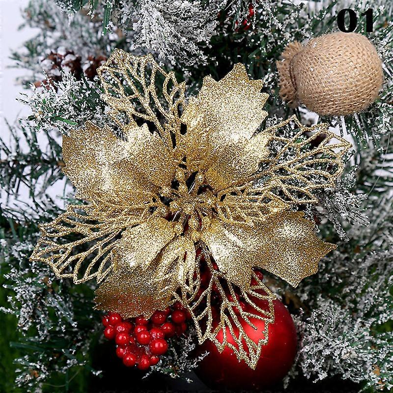 10PCS Artificial Christmas Tree Flowers 16cm Glitter Poinsettia Xmas Decoration