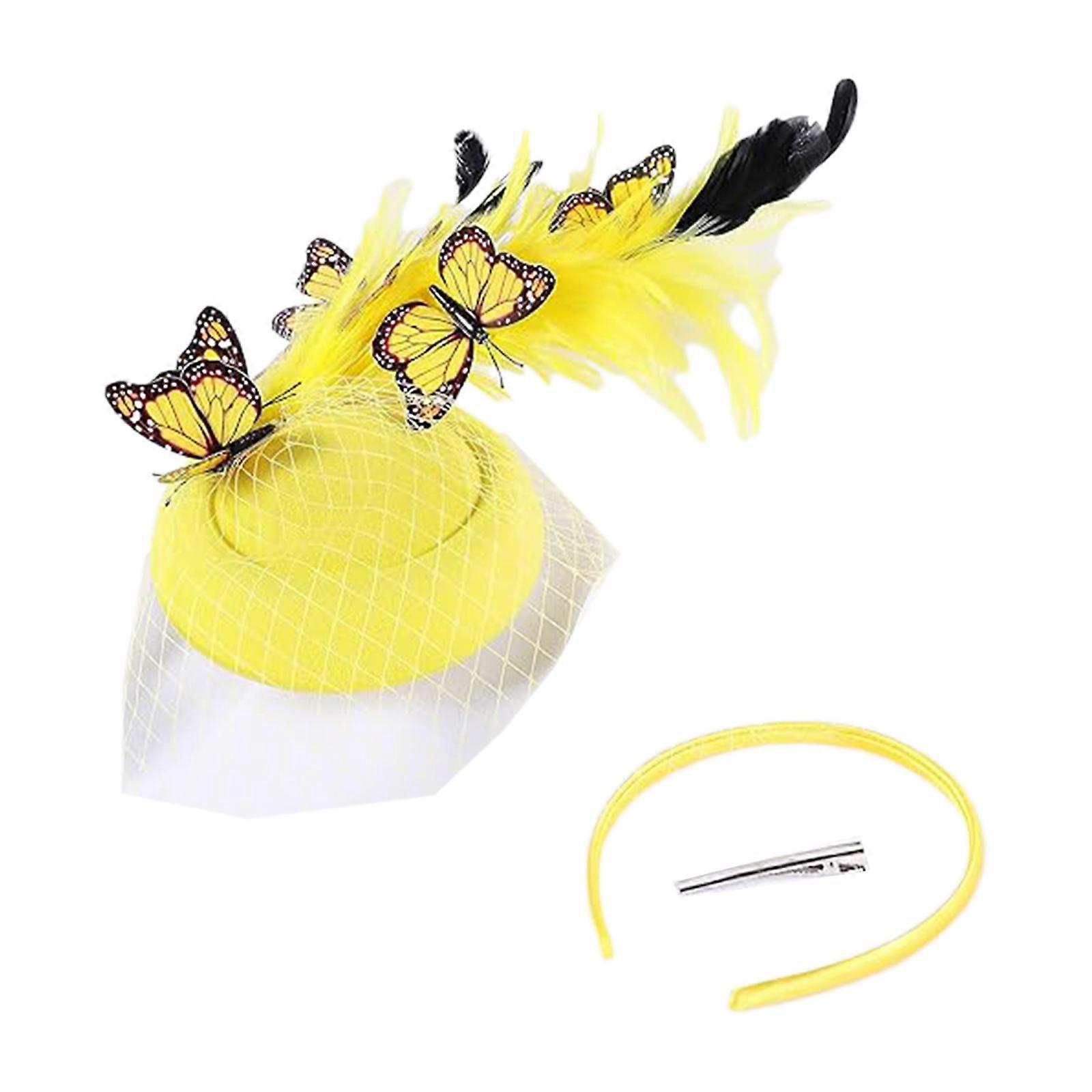 Medieval Feather Fascinator Hat Hairpins Bride Hair Clip Feather Felt Hat Headband 1920s Style Hair Clip for Wedding Yellow