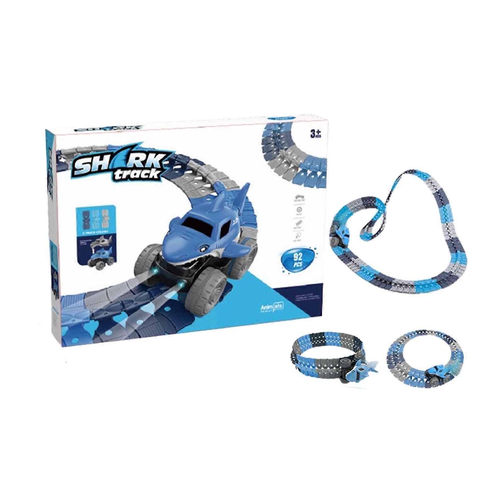 Dinosaur Race Track Car Toy Electric Assembled Race Track Car with LED Kids Christmas Gift Parent-Child Interactive Gift Multicolor