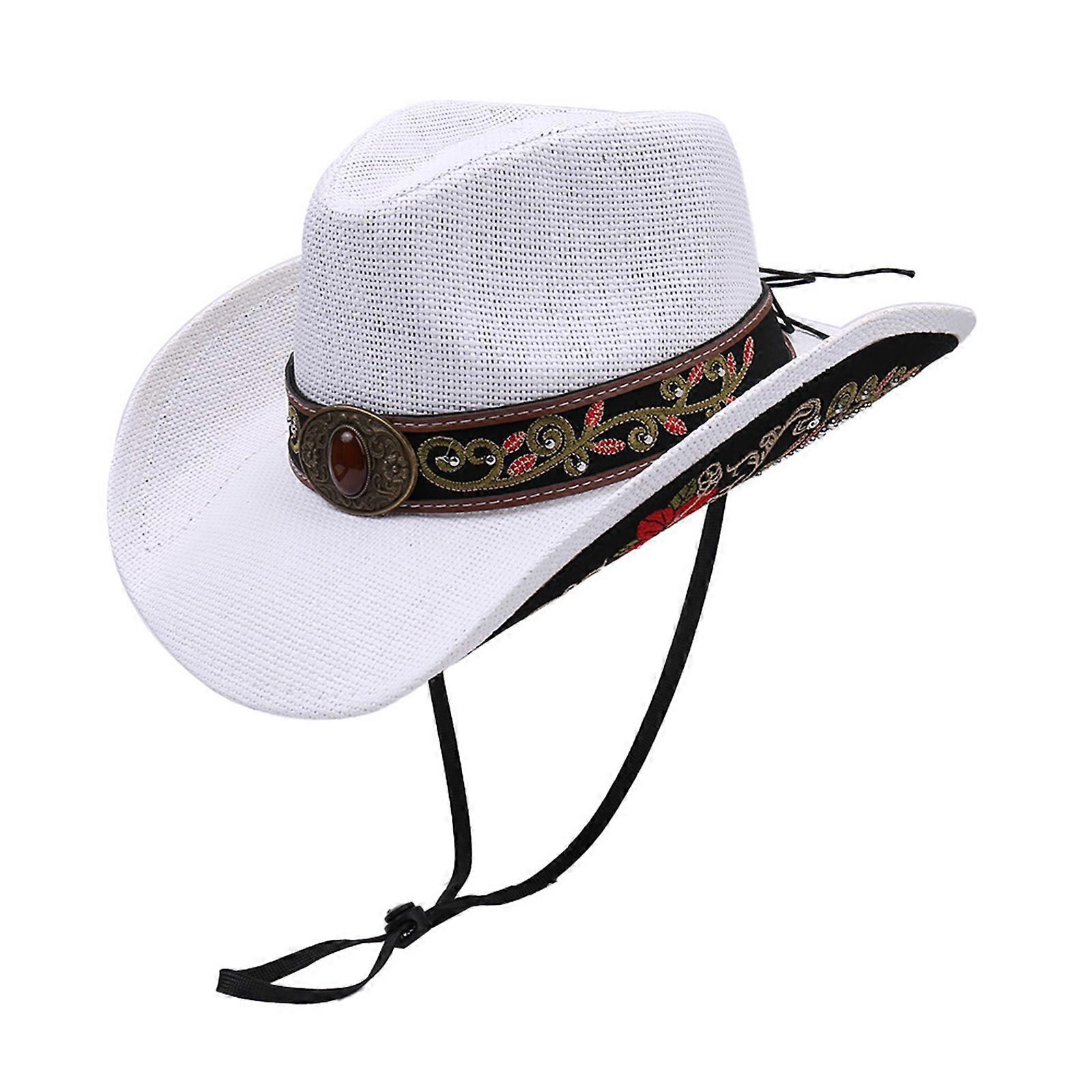 Handwoven Western Styles Hat Paper Straw Construction Decoration Holiday Durability Travel Accessory White M