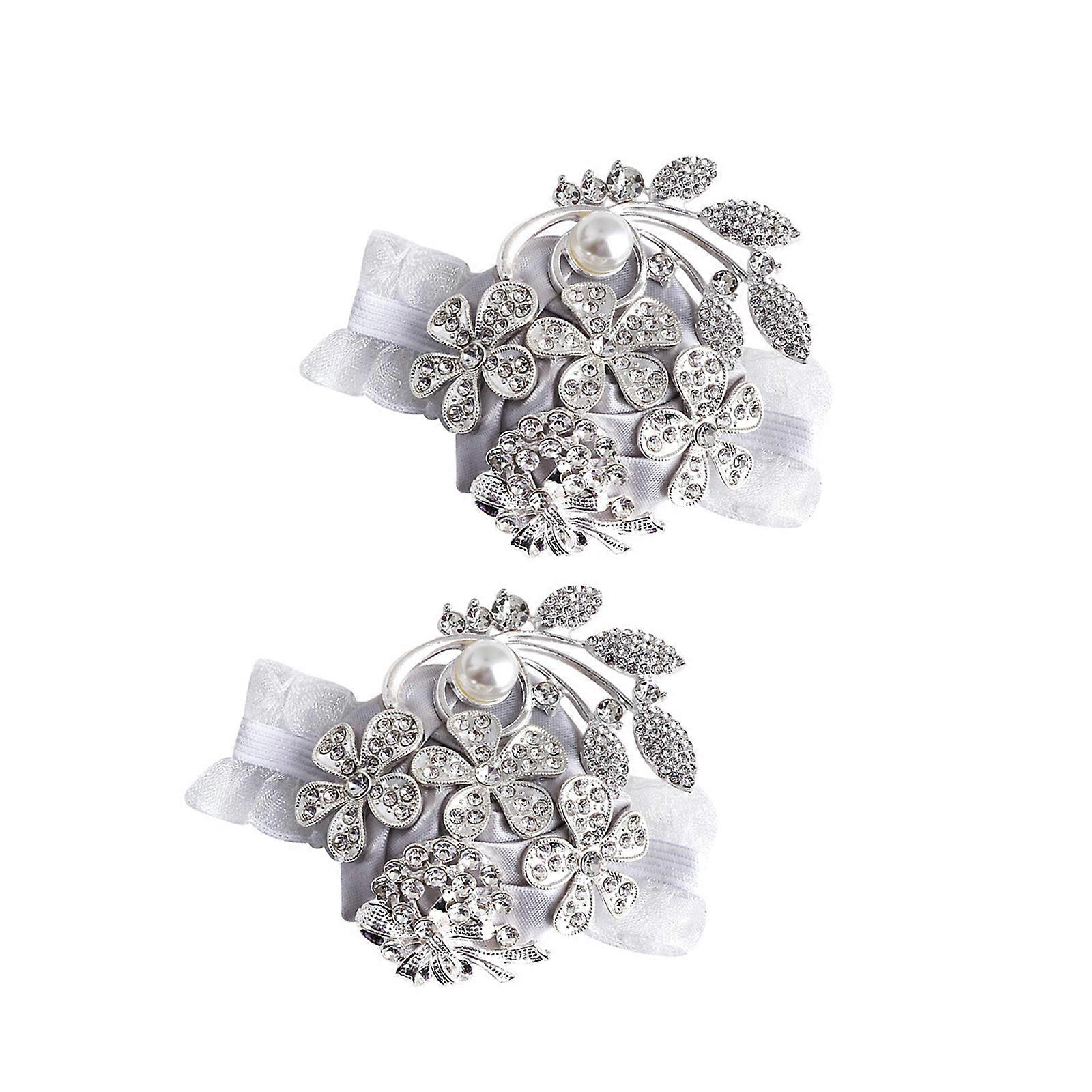 Sophisticated Wedding Wrist Corsages Ribbon Pearls Wristlets For Bridal Party Bridesmaids Groomsmen Ceremony Decors Silver