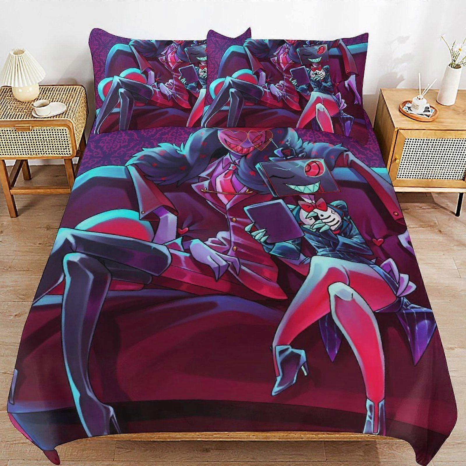 u176 Hazbin Hotel Bedding System Smooth Fabric Zipper Closure Comfortable Texture Soft Feel Duvet Cover Sets Pack n176