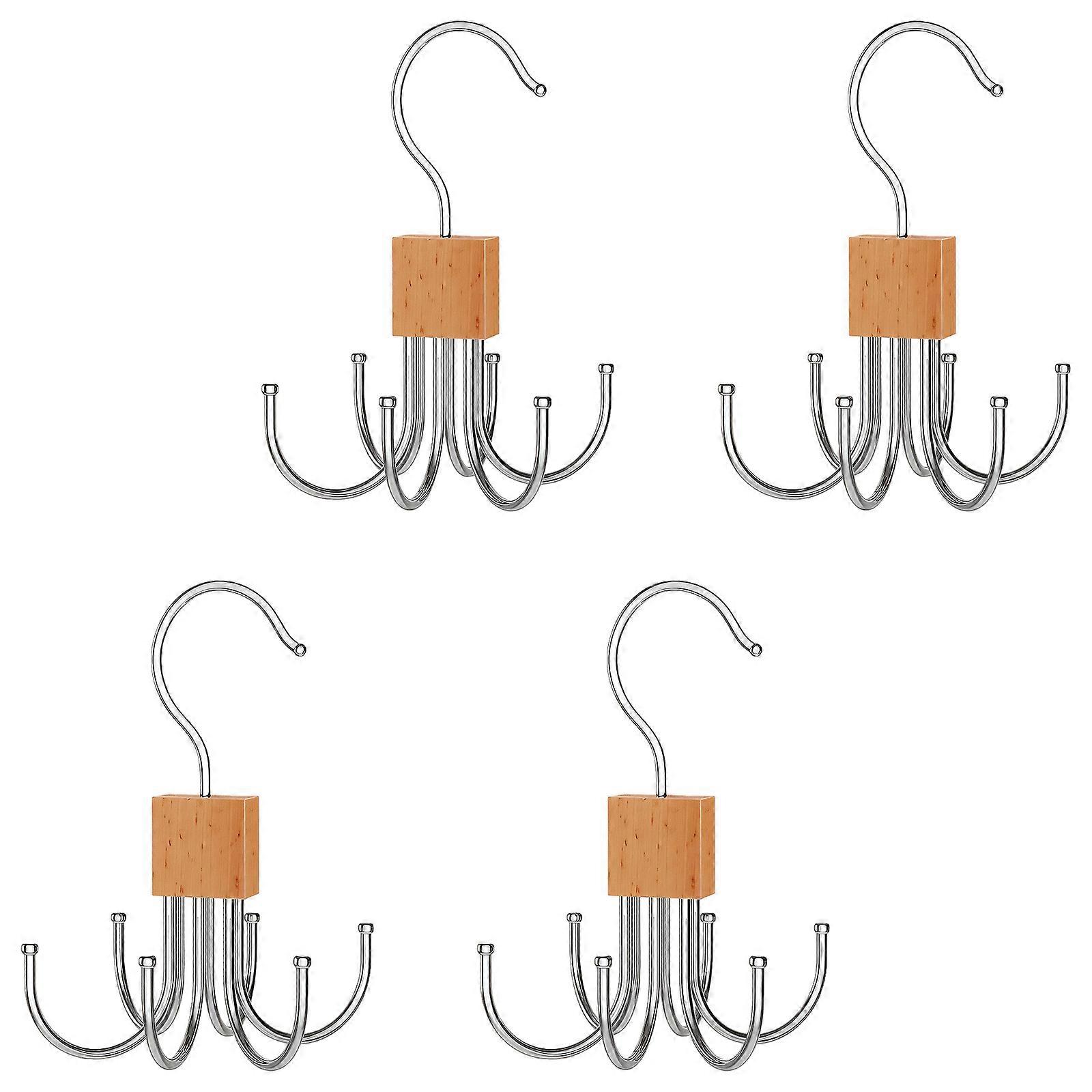 6 Prong Multiple Use Hanging Rack for Closet Entryway Organization Sturdy Metal Frame Wood color