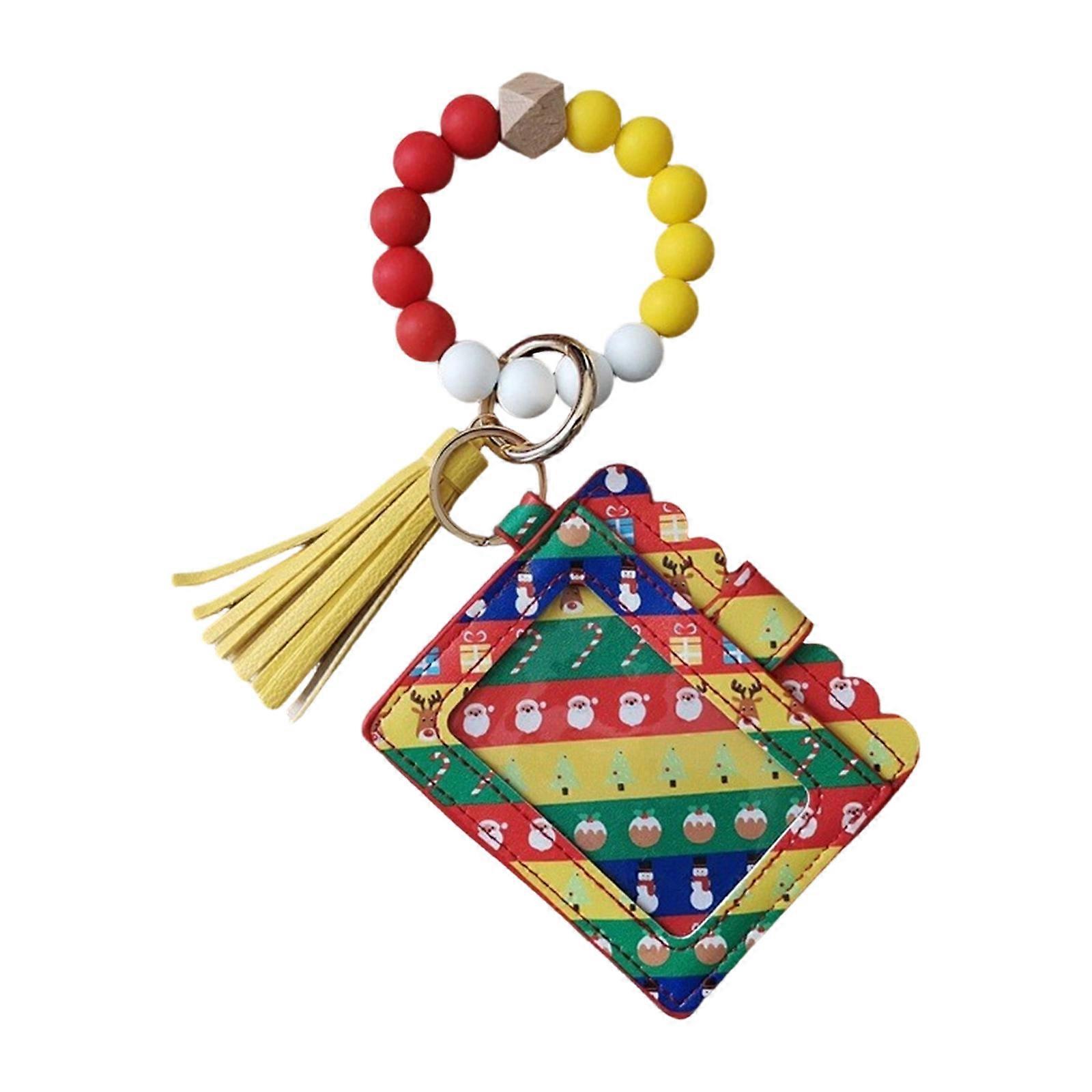 Wristlet Keychain Wallet Credit Card Holder Keyring Keychain Thin Purse Bangle Tassels Key Rings for Women Girls Gift Yellow