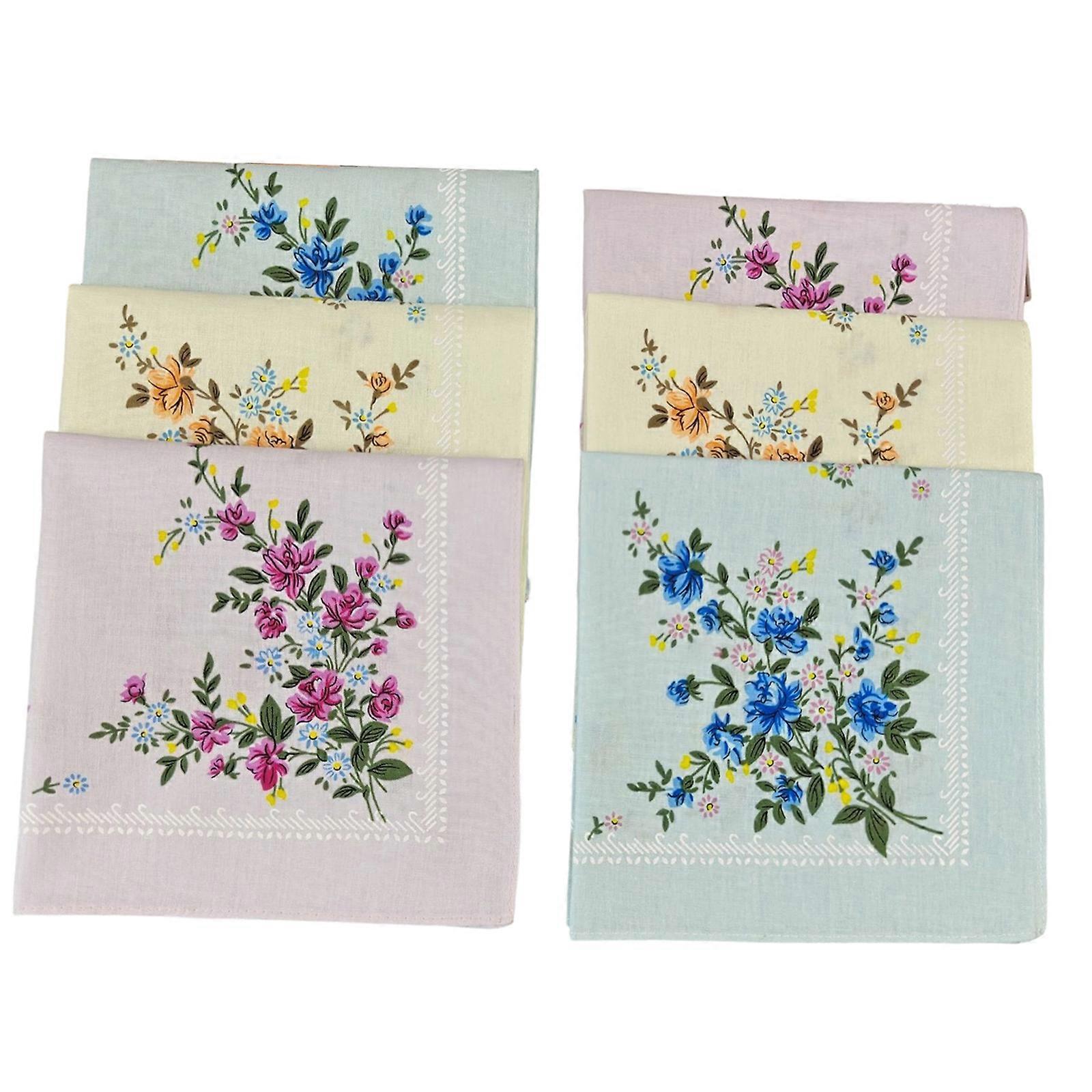 Floral Print Handkerchief Cotton Kerchief Gentle On Skin Comfortable Pocket Square for Women Men Daily Use Essential 6 items