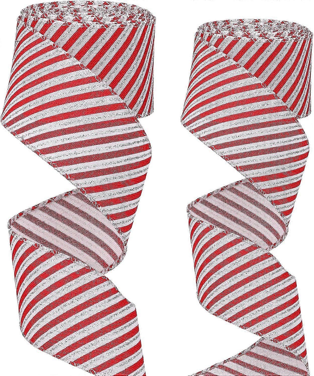 6.3cm x 4.5m 2pcs Christmas Wire Ribbons with Sequins, Red and White Christmas Ribbon, Festival Ribbon Garland for Outdoor and Indoor DIY Decorations