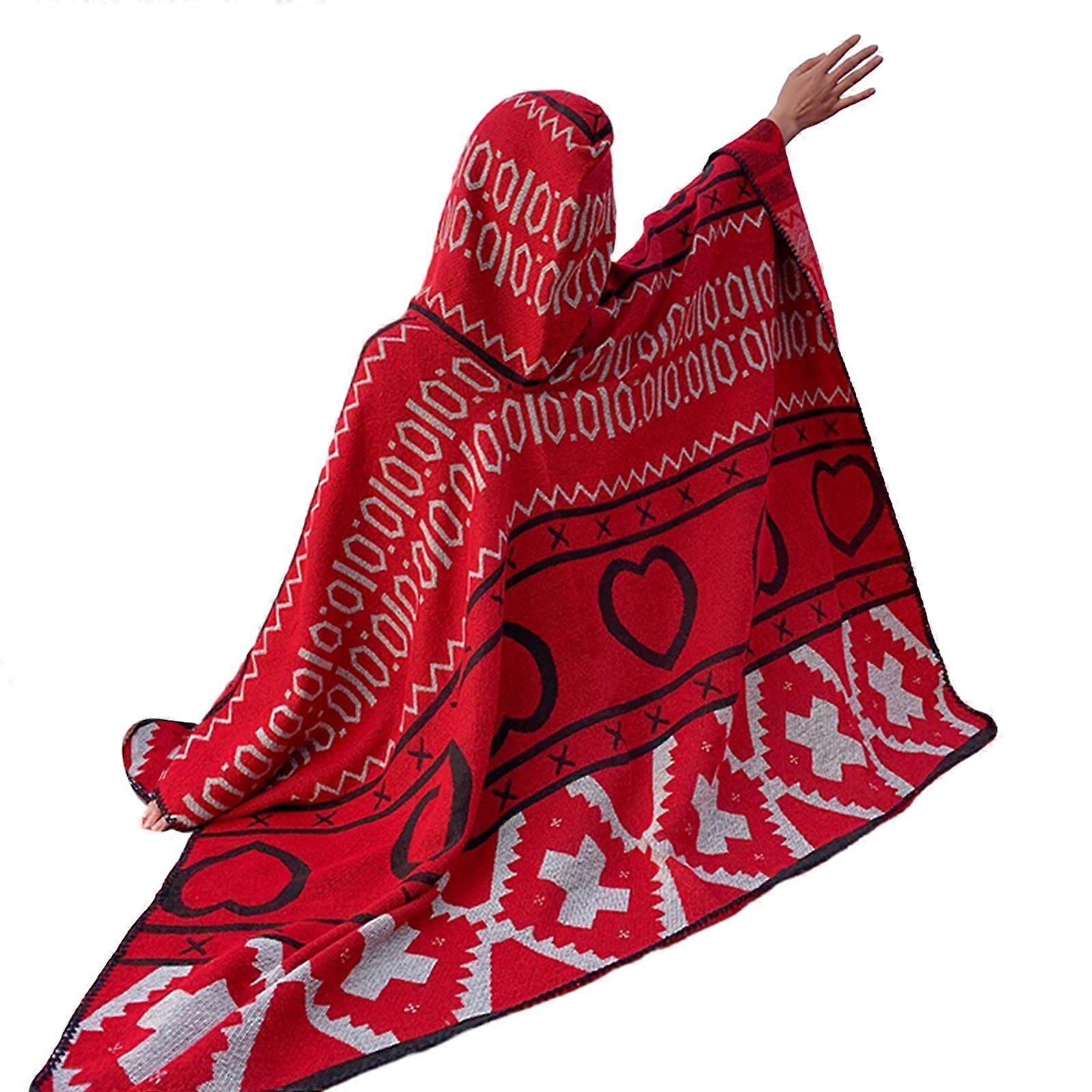 Adults Knit Ethnic Shawl Set Teens Knitted Ethnic Wrap Shawl Winter Warm Woman Girls Hooded Scarf for Camping Traveling Multicolor