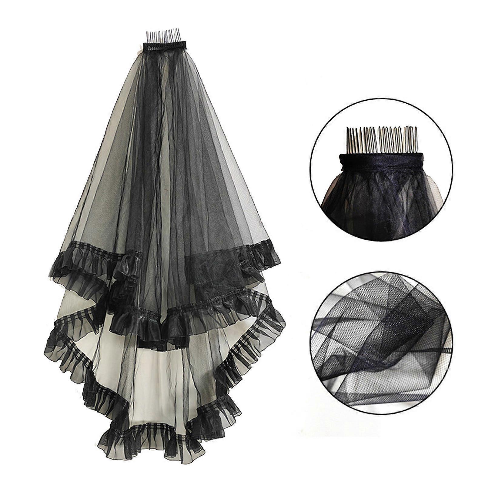 Halloween Bride Lace Veil Women Layered Tulle Bachelorette Party Wedding Veil with Lace Pleated Trim for Taking Photo Multicolor