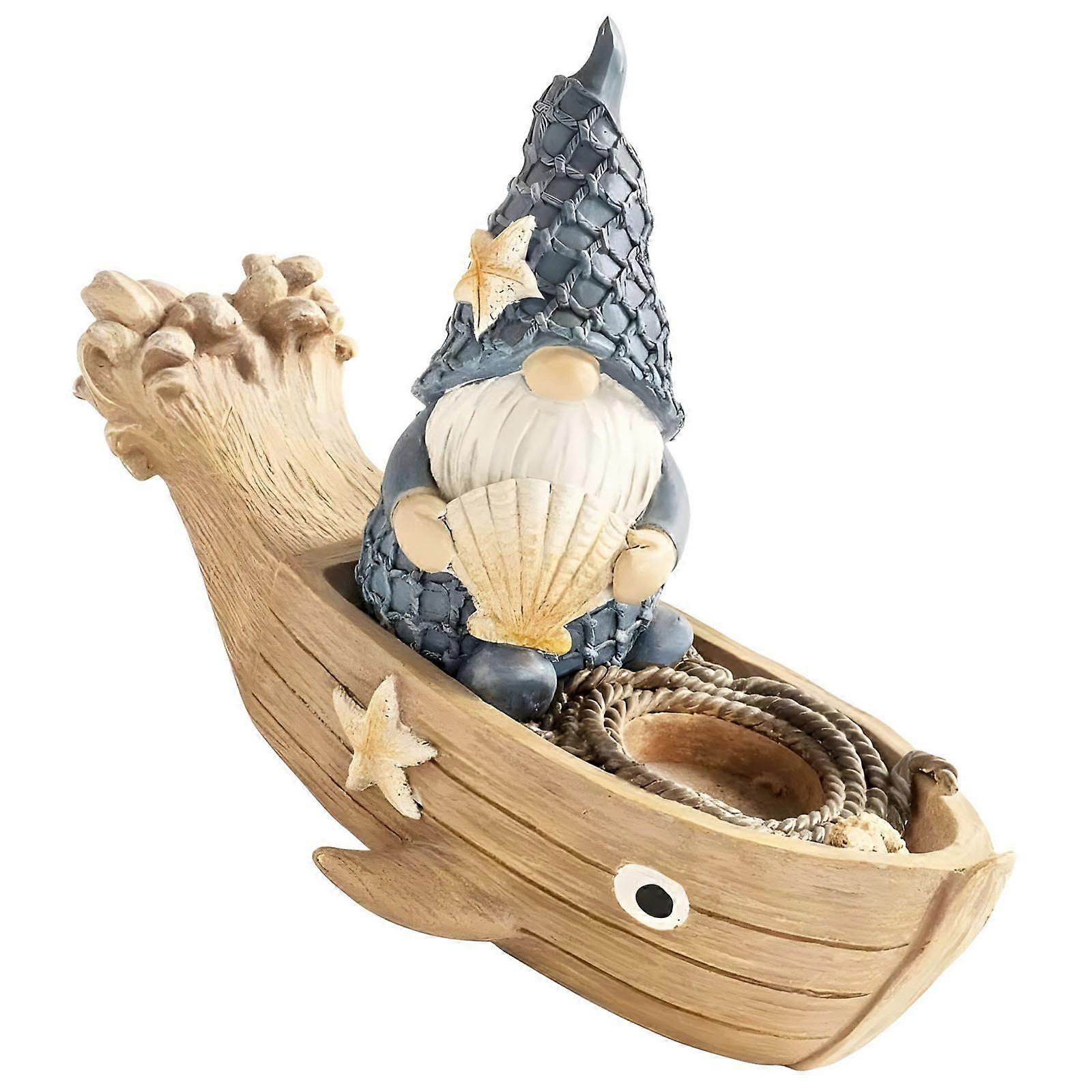 Beach Gnomes Figurines Resin Gnomes Statues Sculptures with Candle Holders Tabletop Ornament for Office Home Decors Multicolor