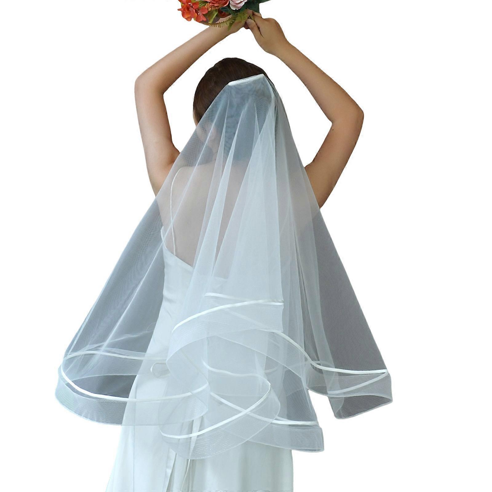 Elegant Two Layer Tulle Bridal Veils Breathable Headveil with Hair Comb For Wedding Party Celebration Formal Occasion White