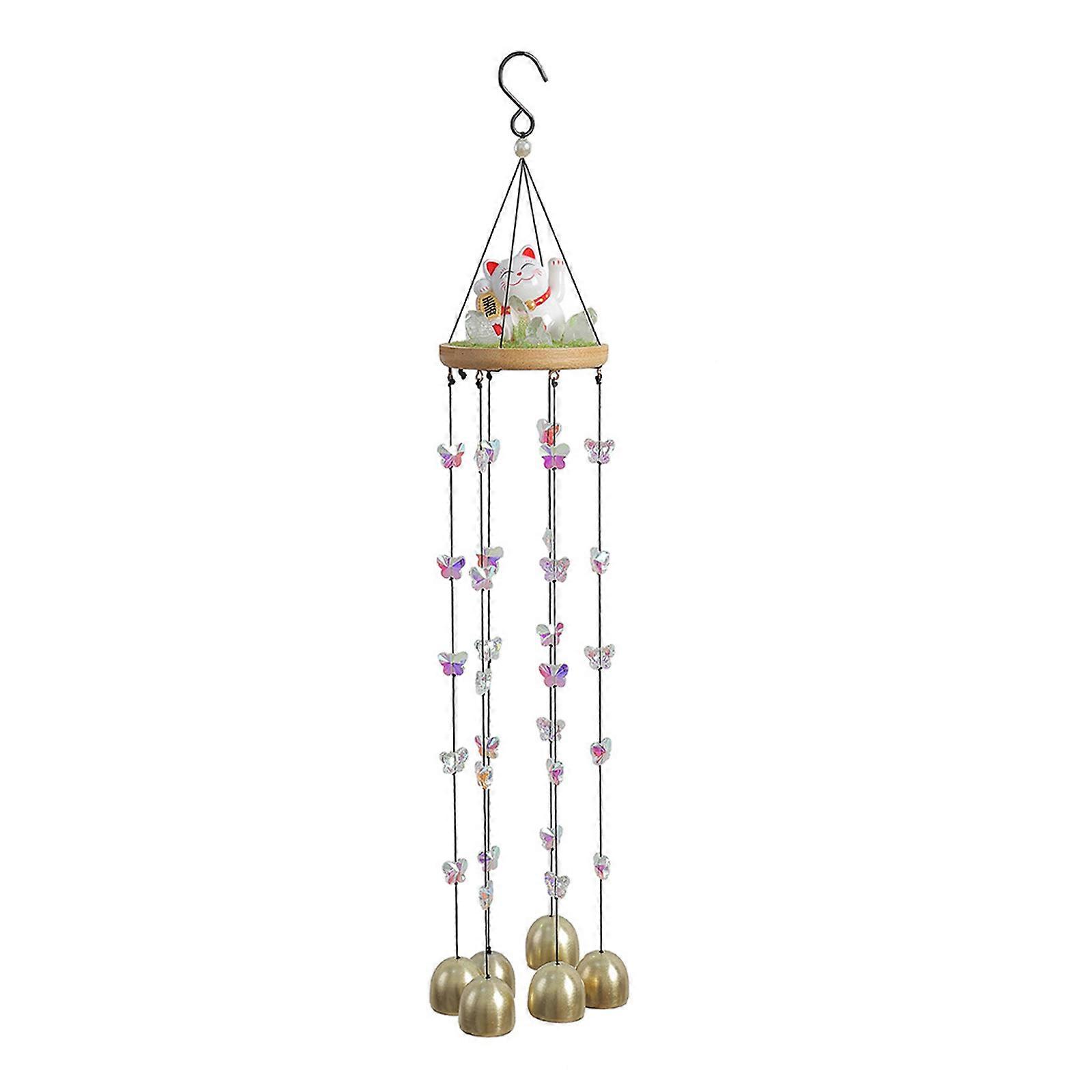 Decorative Fortune Cats Windchimes With Crystal Accent and Copper Bells Gentle Melodies Pendant For Relaxing Area Multicolor