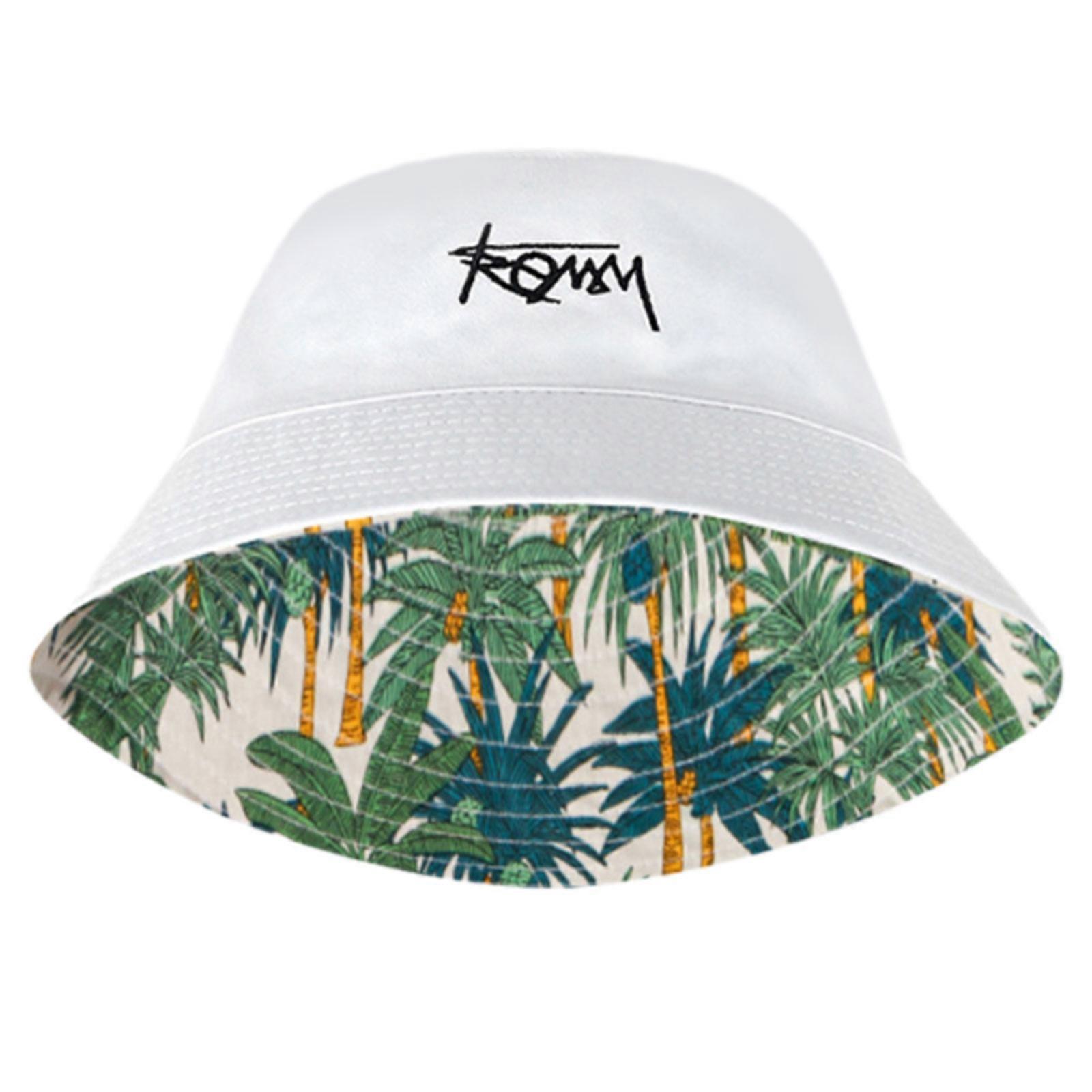 Reversible Sun Bucket Hat Soft Breathable Tropical Pattern Wide Brims Fisherman Hat for Outdoor Activity Hiking Gear White