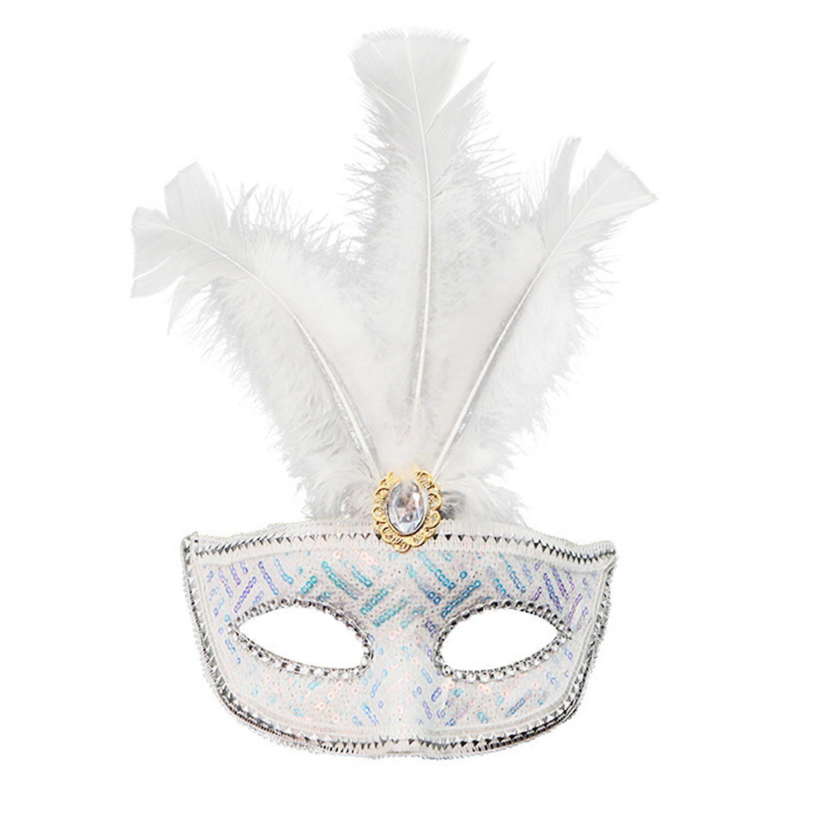 Rhinestones Half face Mask Masquerades Mask,Mardi Gras Decorations Venetians Mask for Womens Halloween Mardi Gras Costume White