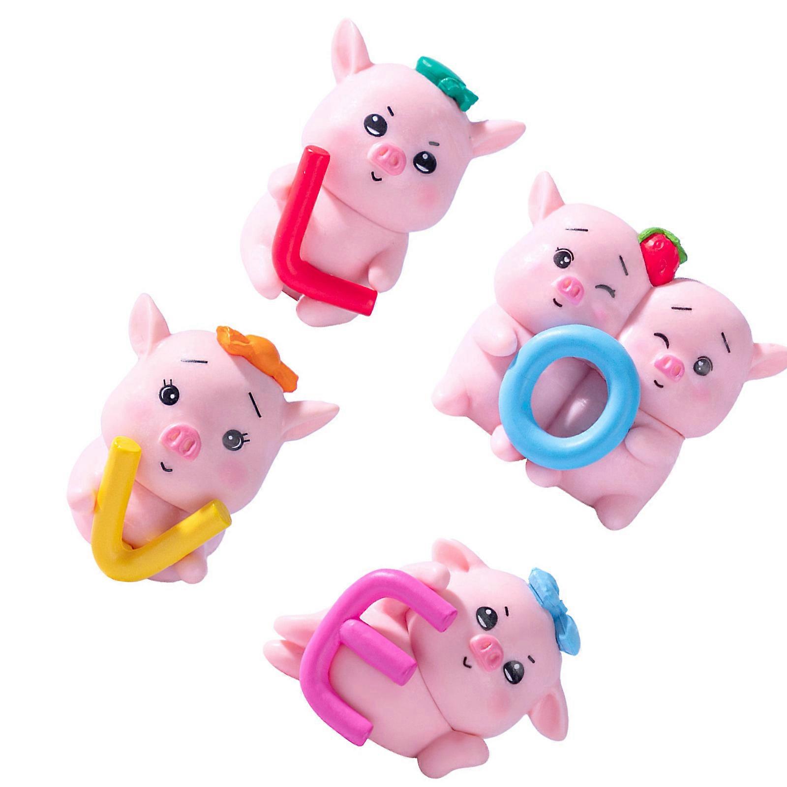 Cartoon Pig Miniature Sculptures Ornaments with LOVE Letter for Desk Garden Nursery Room Holiday Decorations 4Pieces Multicolor