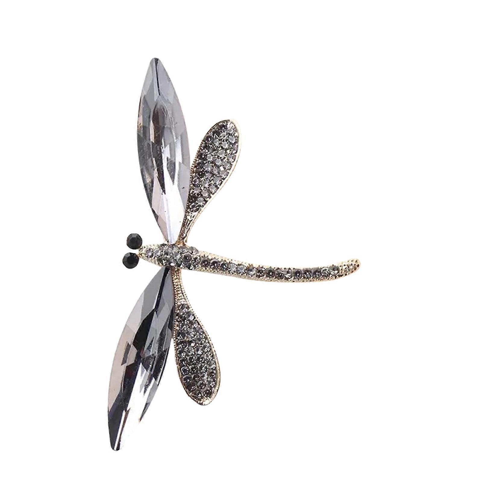 Fashionable Dragonflies Brooch with Sparkling Rhinestones Unique Insect Lapel Pin for Women Shimmering Crystal Accessory Silver