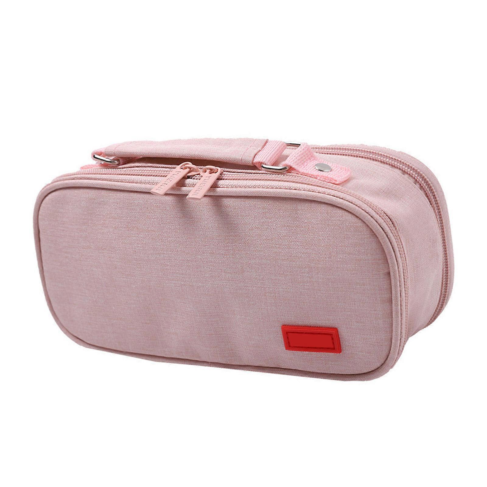 Canvas Pencil Case with Handle 5 Compartment Pencil Pouches Portable Cosmetic Storage Bag for Student Women Kid Adult Pink Color