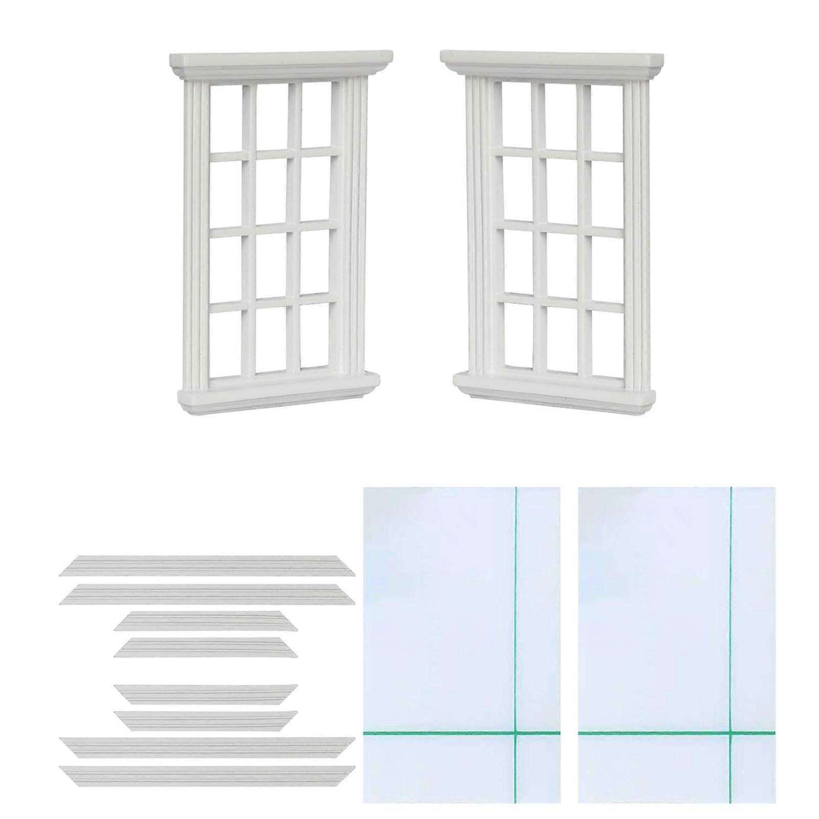 Wooden Miniature Window Model Figure 2PCS 1/12 Scale Doll House Accessory Easy Assembly For Modern Scene House Decors Multicolor