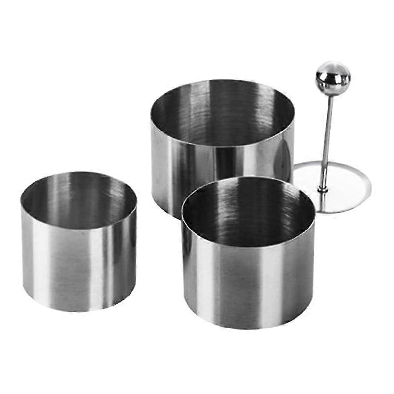 4PCS Stainless Steel Round Cold Dish Mold with Push Plate Kitchen Hotel Dish Tool Salad Plate Fried Rice Forming Mold
