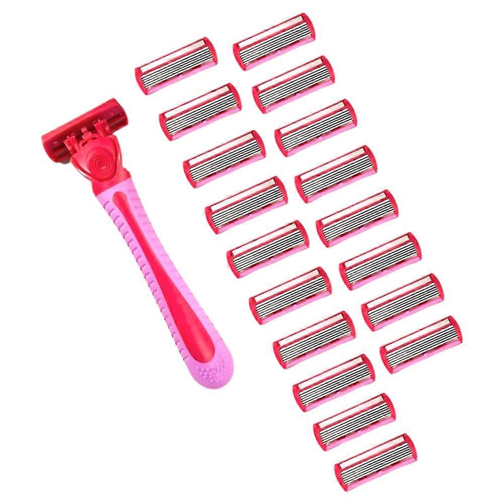 1 Handle + 18 Blades/Women Manual Razor 6-Layer Stainless Steel Hair Removal Shaving Blades Replaceable Shaver Head Red