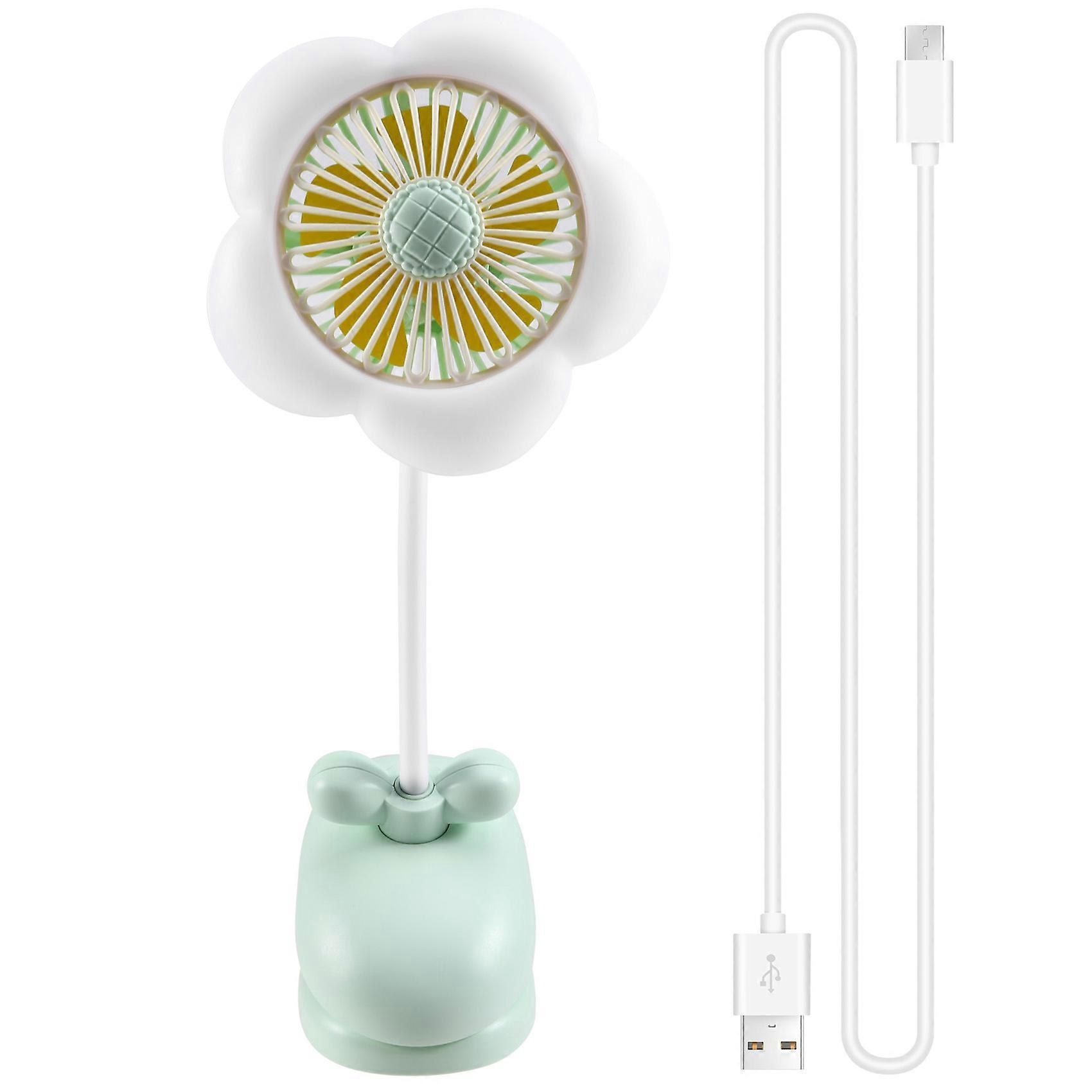 USB Rechargeable Clip on Fan Cute Design Flower Clip on Fan 360° Rotate Cooling Fan with LED Lights for Stroller Camping Green