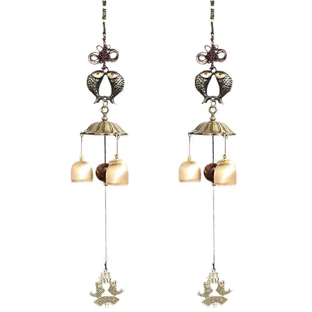 Double Fish Metal Wind Chime Pendant Copper Bell Japanese Style Pendant