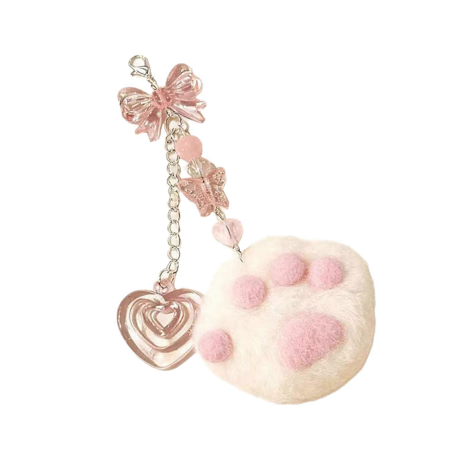 Adorable Plush Cat Paw Keychain With Lobster Clasp And Heart Charm For Bags Keys Accessories Fashionable Bag Charm Multicolor