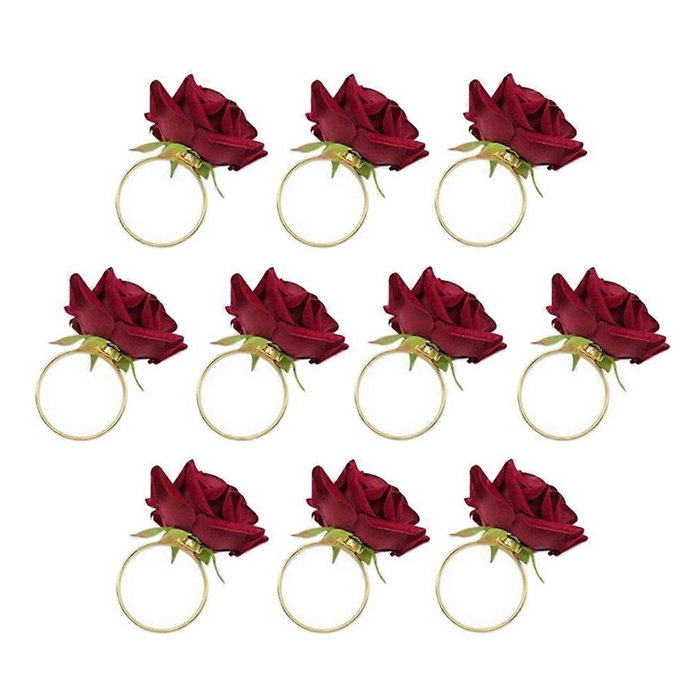 10Pcs Red Rose Shape Towel Buckle Napkin Ring Wedding Party Valentine's Day Hotel Table Decor Napkin Holder