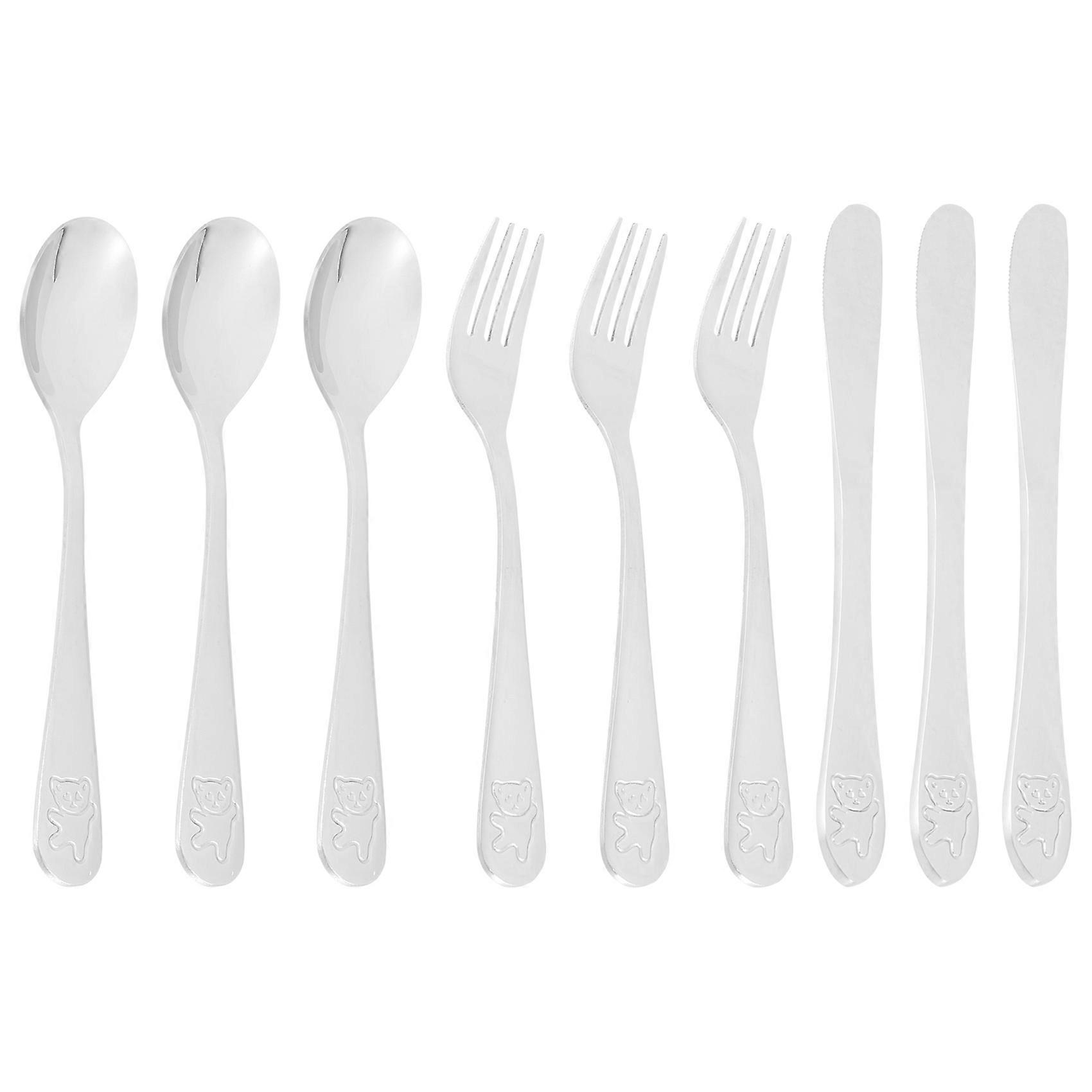 9 Pieces Kids Silverware Set Children's Safe Stainless Steel Utensil Little Bear Kids Cutlery Set Metal Toddler Utensils