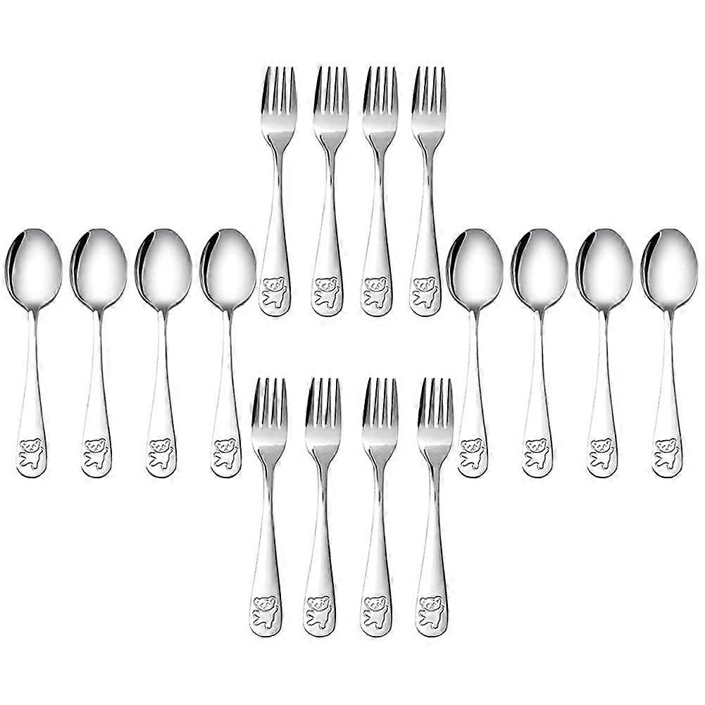 16 Pieces Kids Silverware Stainless Steel Children's Safe Flatware Little Bear Child Spoon and Fork Set Toddler Utensils