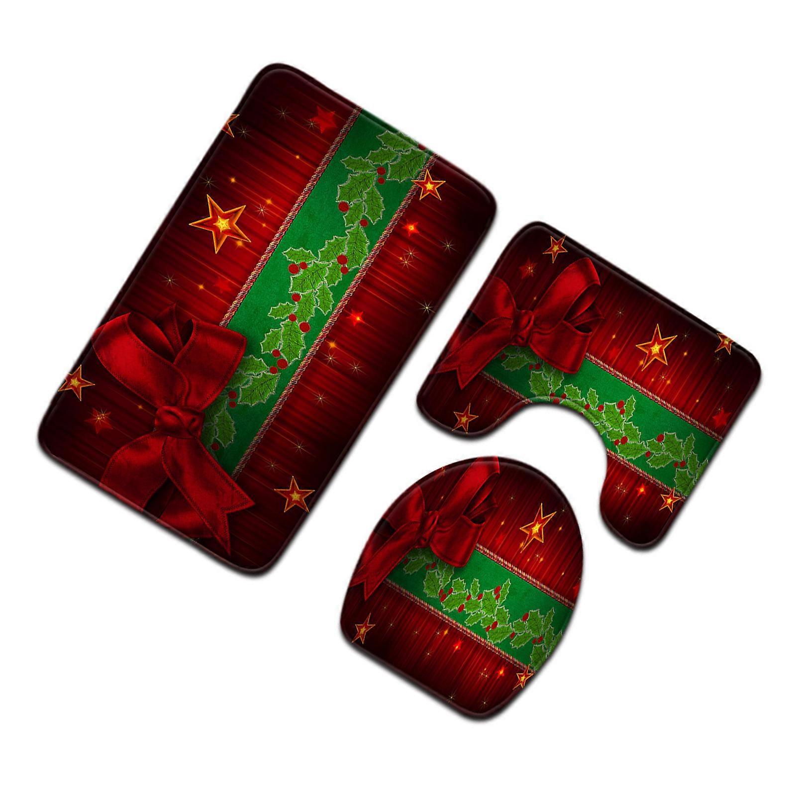 Holiday Bathroom Decor Set Christmas Toilet Seat Cover, Mat, and Foot Pad Christmas Bathroom Accessories Rug Set Multicolor