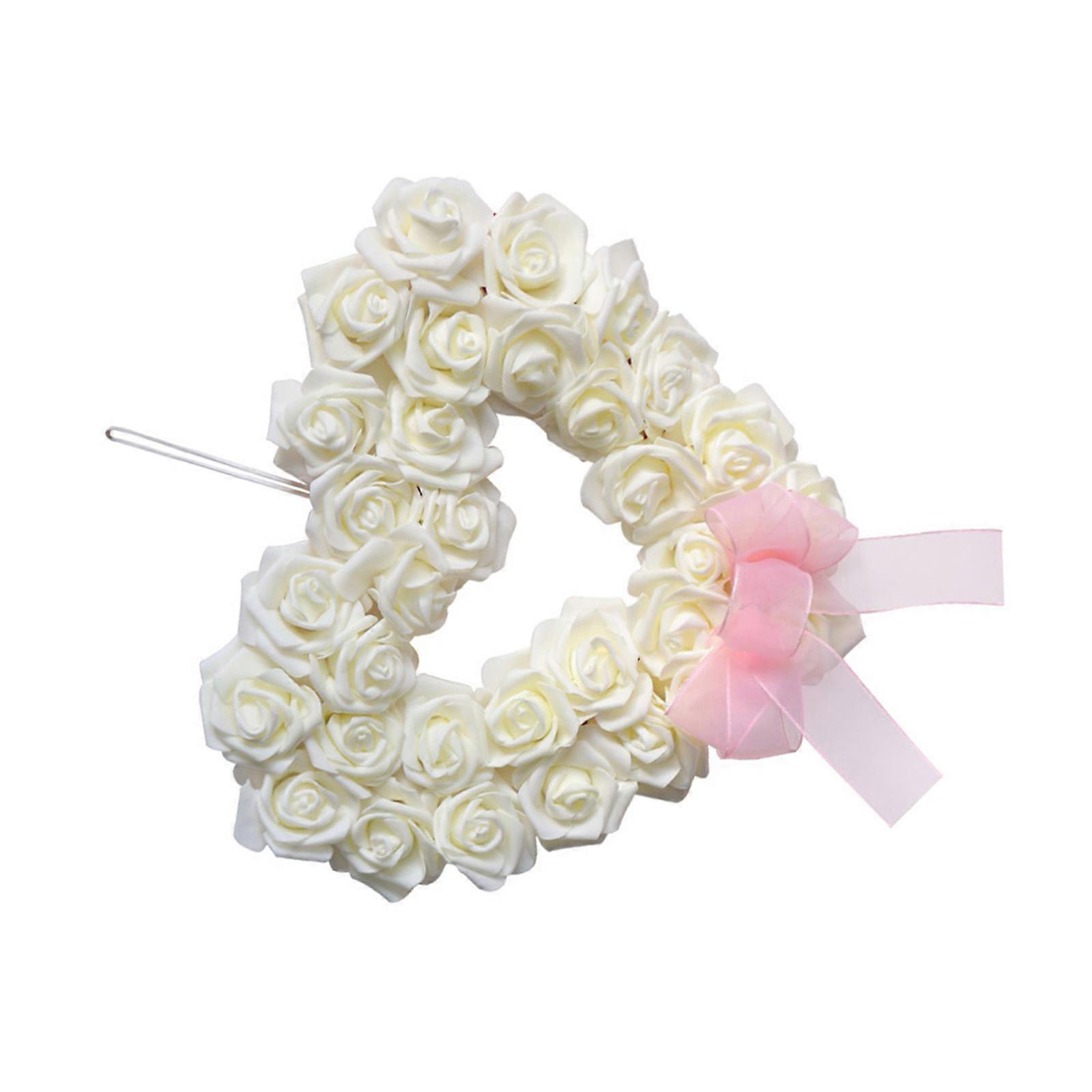 Artificial Wreath Heart Shaped White Rose Flower Wreaths with Bowknot Ribbon Pendant for Wedding Valentines Day Decor Multicolor