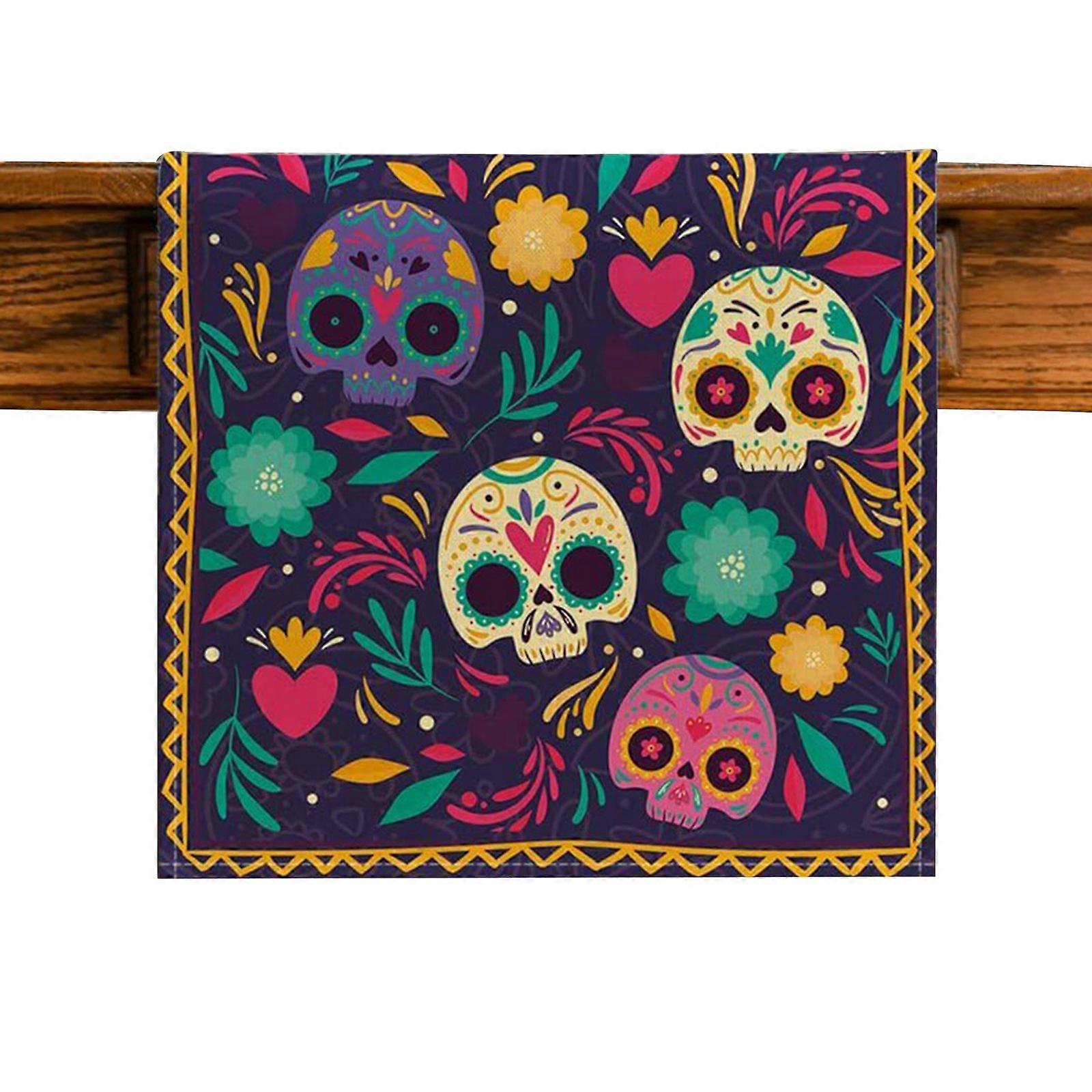 Horror Halloween Skull Table Runner Ethnic Mexico Flower Table Runner Day of The Dead Kitchen Dining Tablecloth Table Multicolor