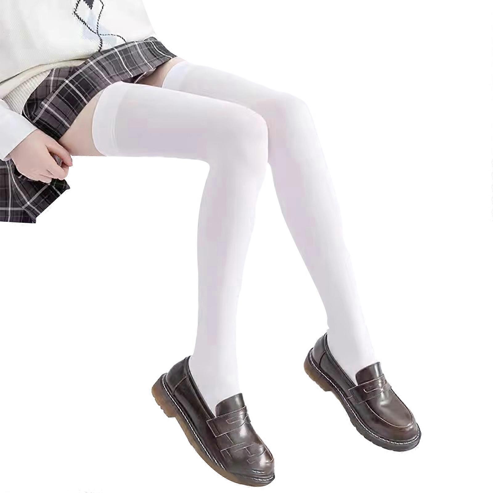 Womens Girls Kawaiis Cosplay Stockings Sexy Silk Calf Socks Fashion Solid Color Knee High Socks Cute Lolitas Long Socks White 70cm