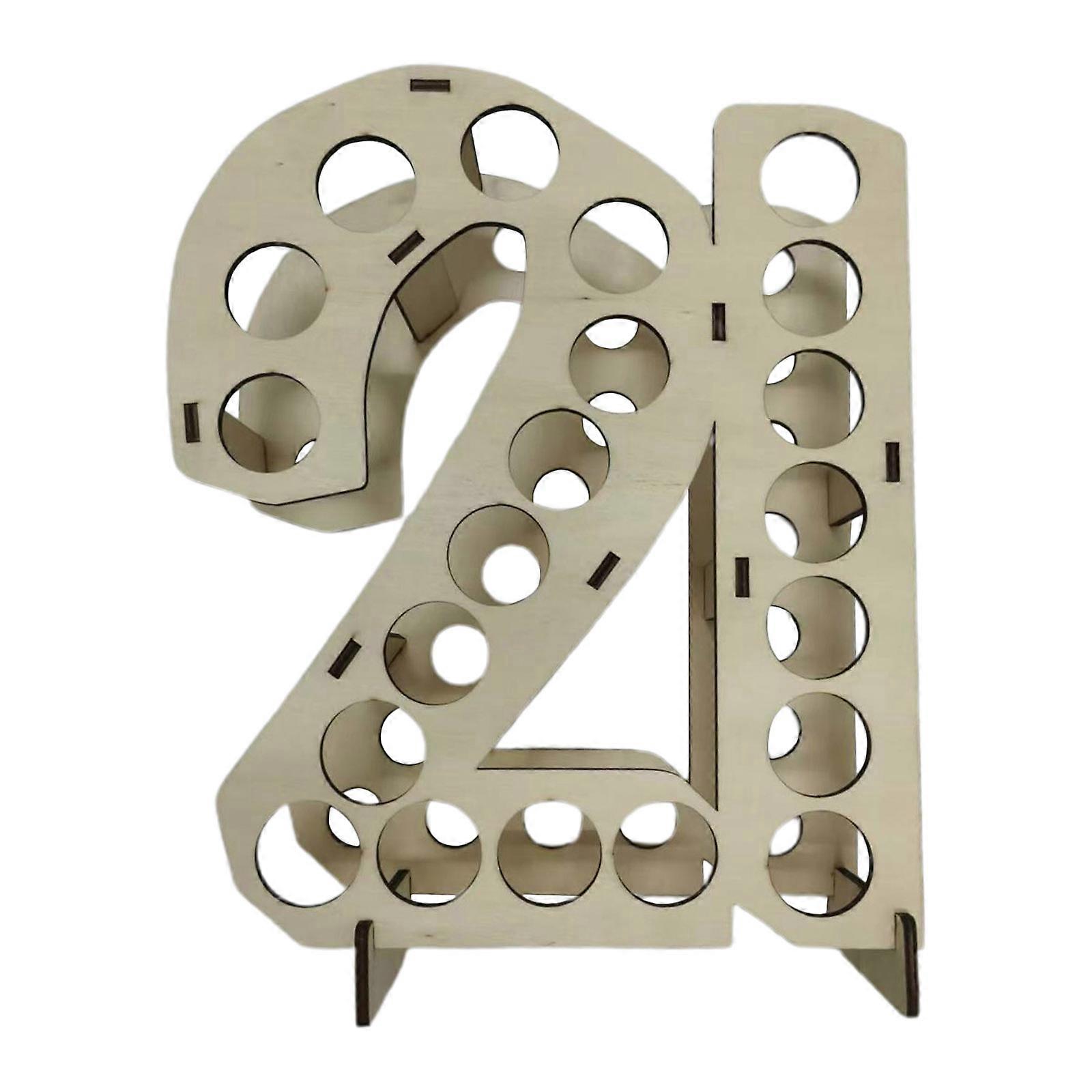 Features: Wood Bottle Holder with the shape of "21". Store mini liquor bottles (not included) by including this with your 21st Birthday Decorations. This Bottle Rack is a Versatile 21st Birthday Backdrop-! This "21" Unit is enlarged to fit 21 Bottles! One fully stocked- holder is a fun way to keep celebrating this milestone- birthday. It is a great decoration for your table, adding- Birthday atmosphere to you-. If you have any questions, please contact us. Specifications: Color:Log Color, White Material: Wood Size:Approx.35x28x12cm/13.77x11.02x4.72in Quantity:1pc Package Includes: 1x Bottle Holder note: Please allow a little error on the size due to manual measurement. The color might exist slightly difference due to different displays.