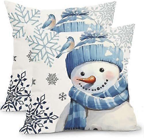 Winter Snowman Snowflake Pillow Covers 24x24 Inch Blue Christmas Throw Pillow Covers Set of 2 Xmas Winter Holiday Pillowcases Cotton Linen Cushion Cov