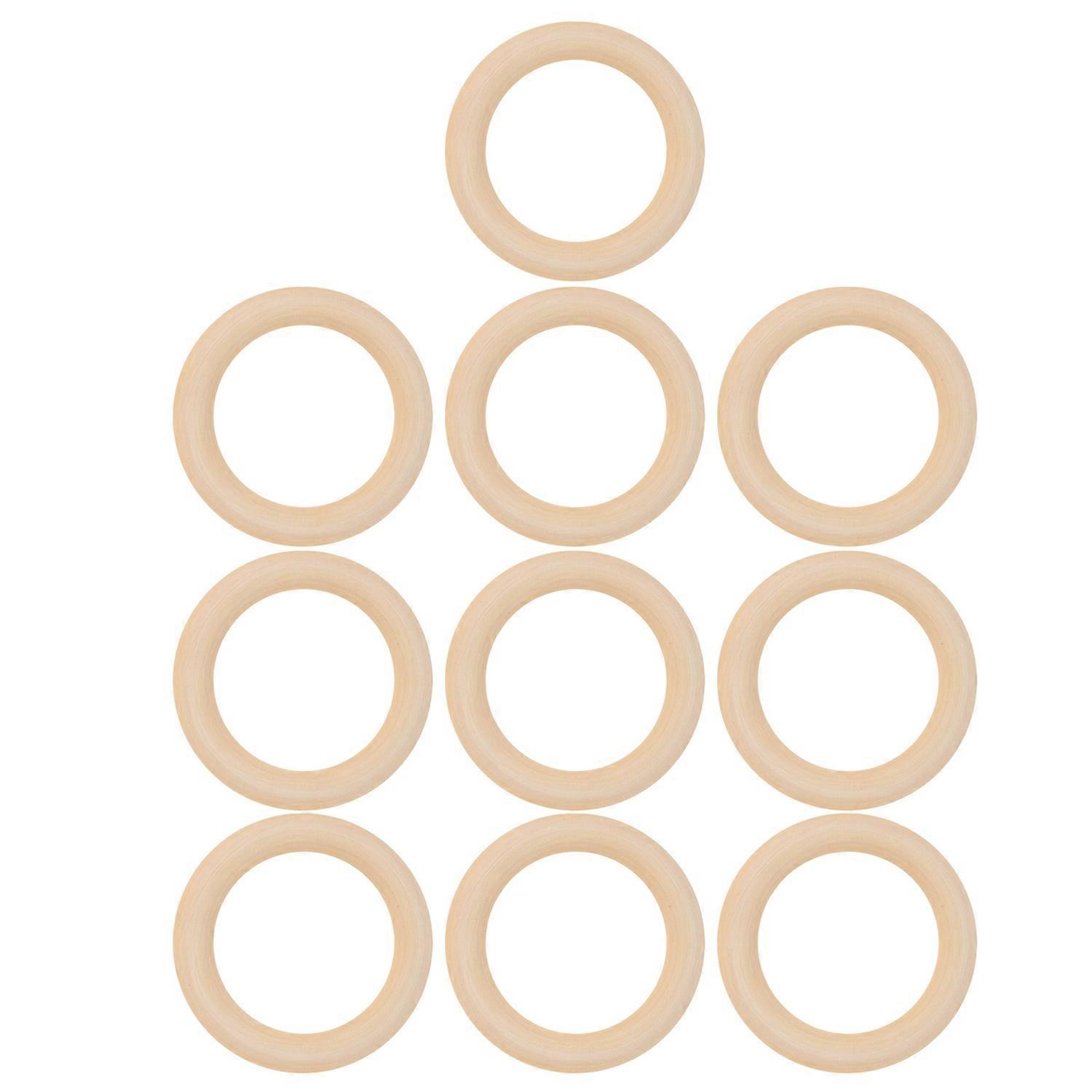 10pcs Baby Natural Teething Ring Unfinished Wood Circles for Craft Pendant ConnectorsWood Color 65mm